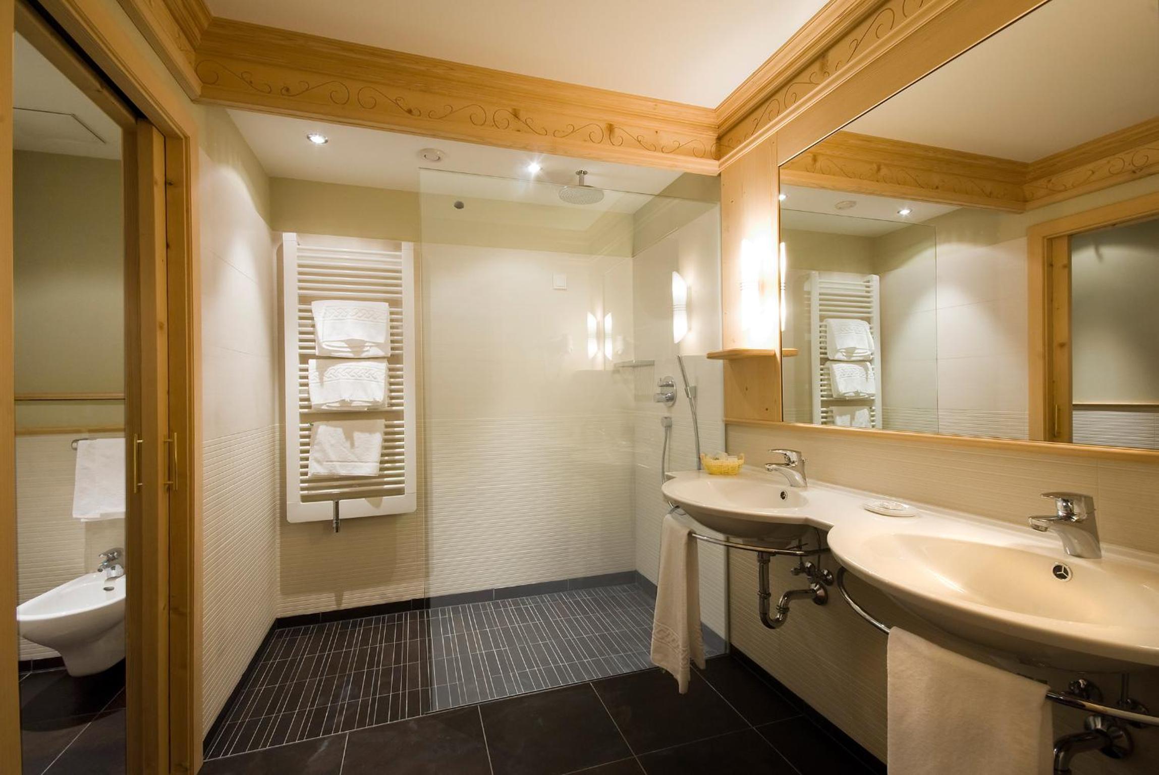 Alpin & Vital Hotel La Perla, nestled in Val Gardena Valley, offers elegantly furnished rooms with modern amenities, including free Wi-Fi and LCD TVs. Enjoy stunning mountain views from your private balcony in most rooms.