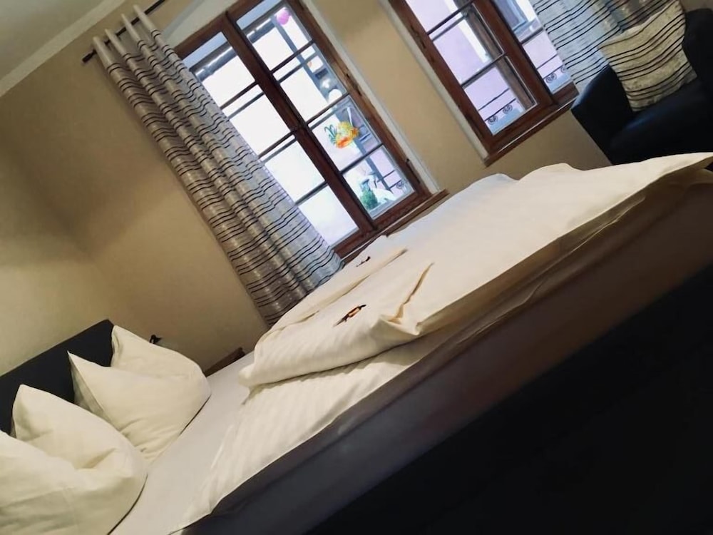 Chambre au rdc donnant directement sur une rue d’un côté et sur les poubelles de la cuisine de l’autre. Pas de cafetiers ni de bouilloire ni même de gel douche. Ne prenez pas la chambre 1. Petit dej correct, sans plus. Le personnel parle à peine anglais. L’occasion de tester votre allemand :-)