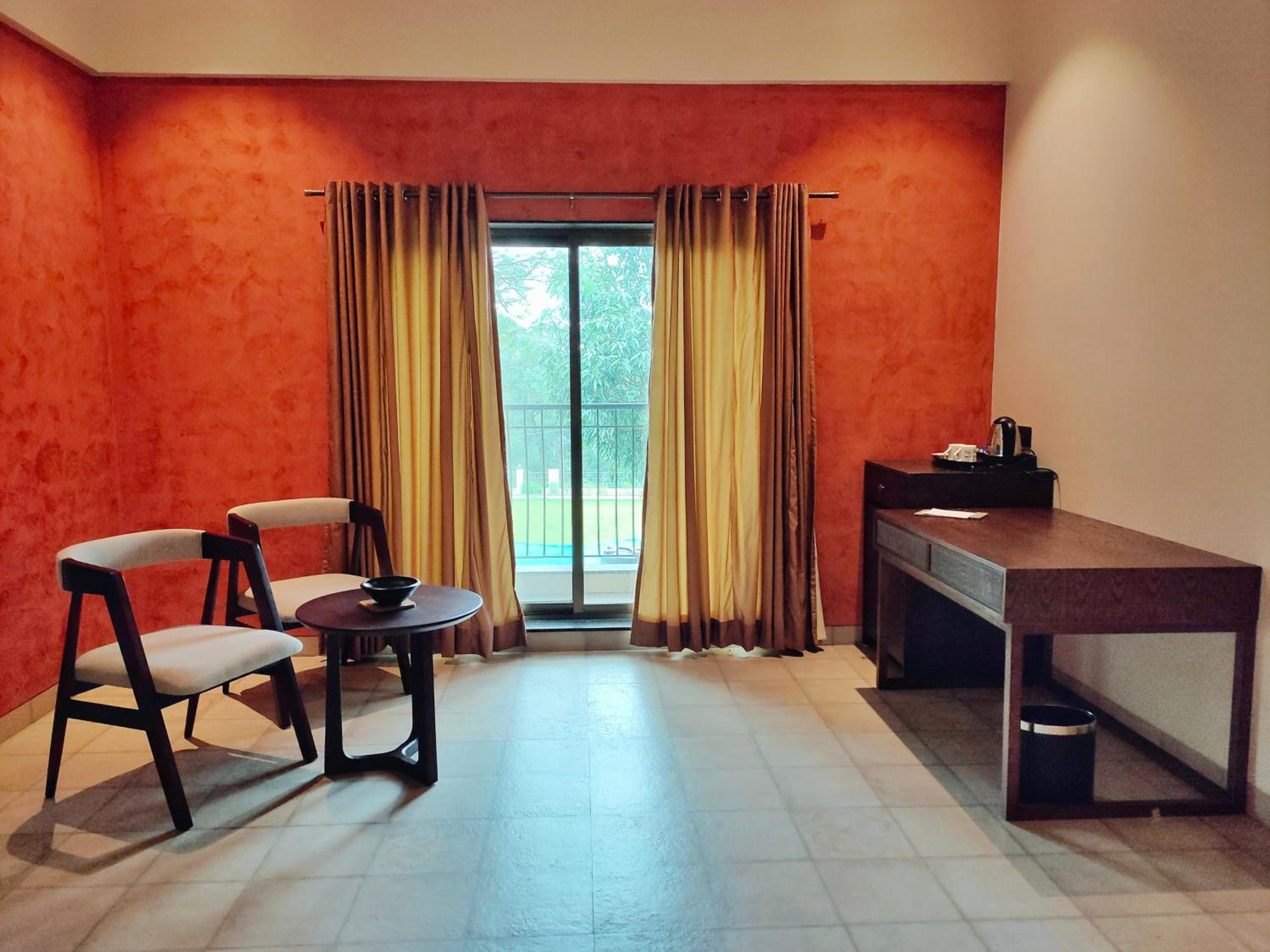 I liked how beautiful the hotel was, from the lobby to the outside area and the room itself; everything was very nice. The staff was very helpful and kind- Nisha was one of the nicest people I interacted with from the staff. The room was big, it had all the amenities a nice hotel room should have- a comfortable bed, TV, kettle, tea and coffee with sugar, and I liked the study table and the chair for work.