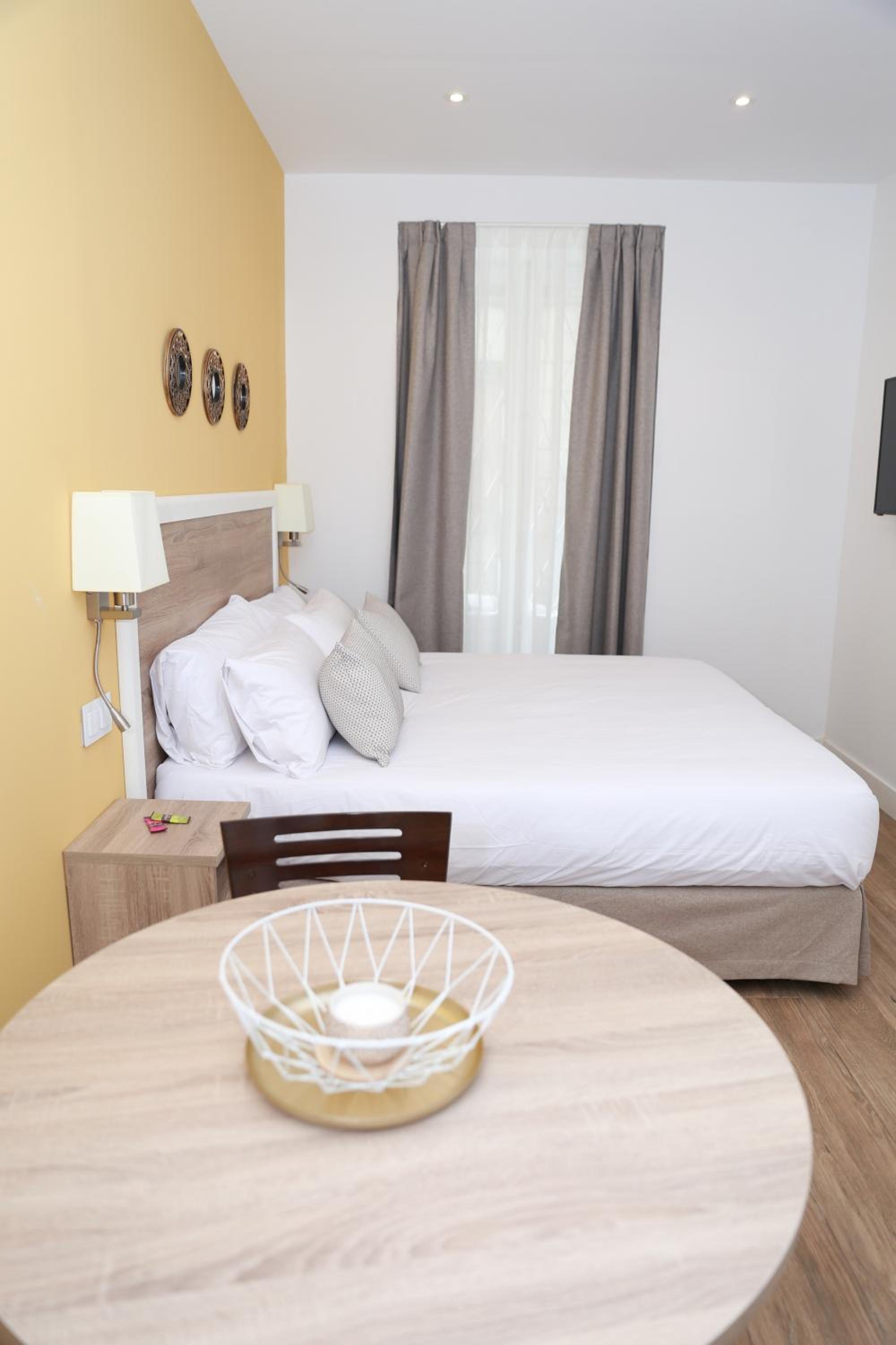 Loved EVERYTHING! The staff were so helpful. The room was spacious, very clean and plenty of storage. We didn't use the kitchen except for the fridge and kettle. Great shower. The room was very hot. The temperature is locked and I had to go down to reception first night around 2am as melting. Reception said he couldn't lower temperature so suggested we turned off aircon at panel and open the window ( which would only open a couple of inches for safety reasons- on 3rd floor). The beds and pillows were so comfy. Appreciated the free coffee and mini muffins at breakfast and adored the free wine after 7.30pm! We'd come back after a long day sightseeing and play a game in reception and have a glass. There's a carre fore express a couple of minutes walk away to grab snacks to accompany the wine if room after dinner. The location is faultless walkable to all the sights- so central. You could not pick a better hotel- 100% recommend. They booked a taxi for us to go to airport, the €33 fixed fee is great to know you'll not get ripped off.