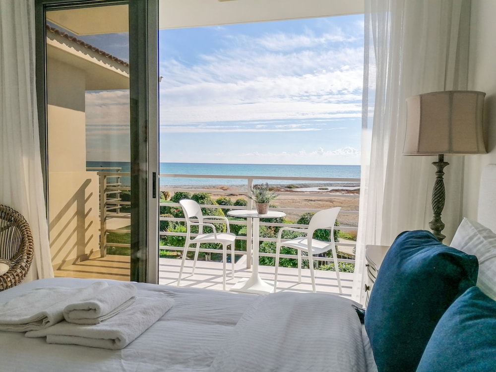 Beach front! Spacious and comfortable apartments. Well equipped kitchen. Clean and nicely decorated. Just lovely! You will need a rental car to get around. Nearest grocery store in Mazotos (5 min drive). Camel park - (7 min drive).