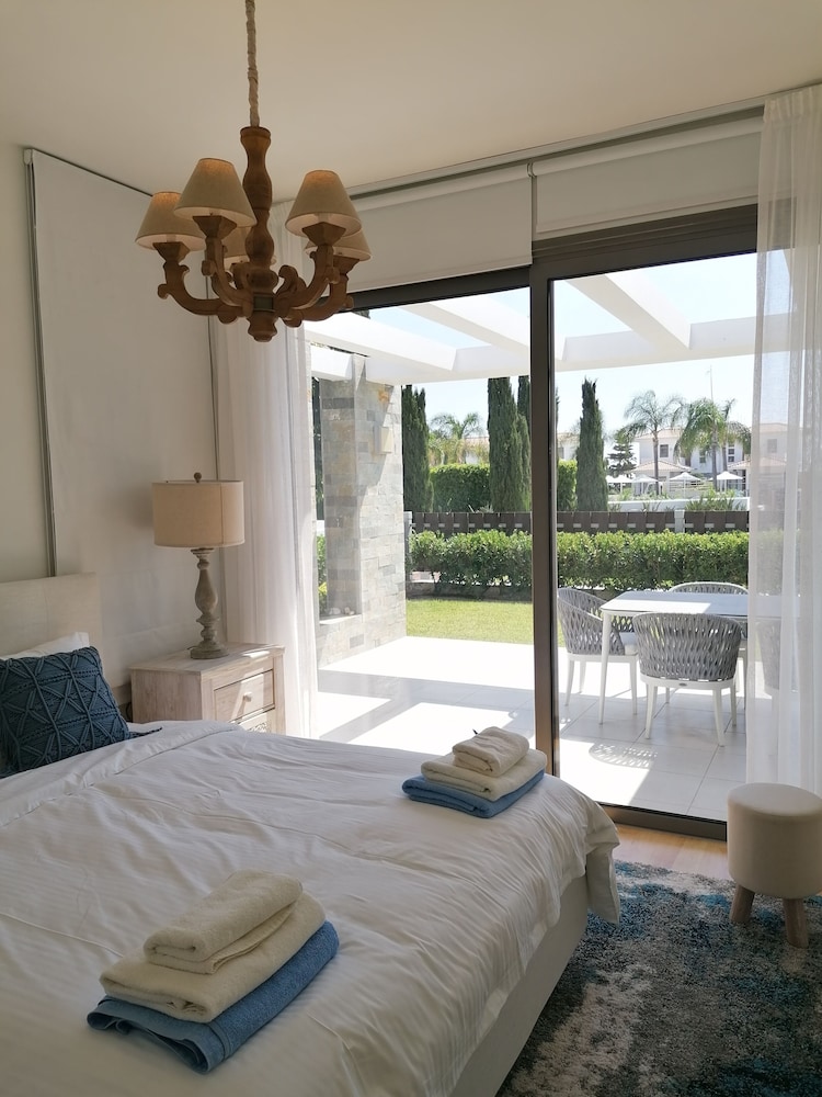 Très beau complexe hôtelier avec très belle piscine et sa belle plage privée. Grand appartement avec 3 chambres , équipé de climatisation, grande terrasse. Le logement est très fonctionnel avec lave vaisselle, lave linge , table à repasser. Grande terrasse pour profiter de l extérieur. Personnels sympathiques , efficaces lorsque l on a besoin d eux. Les extérieurs sont arborés et très bien entretenus.Possibilite de manger sur place. Supermarché à proximité dans le village de Mazotos. Idéal pour les familles. Voiture indispensable pour vous déplacer. Recommandons fortement.