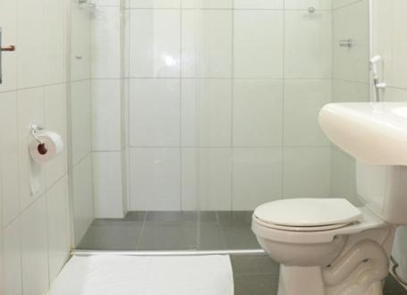 O banheiro do quarto que fiquei não tinha janela, mas tinha exaustor, só que não funcionava, então fica com aquele odor de banheiro o tempo todo.