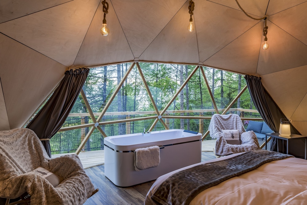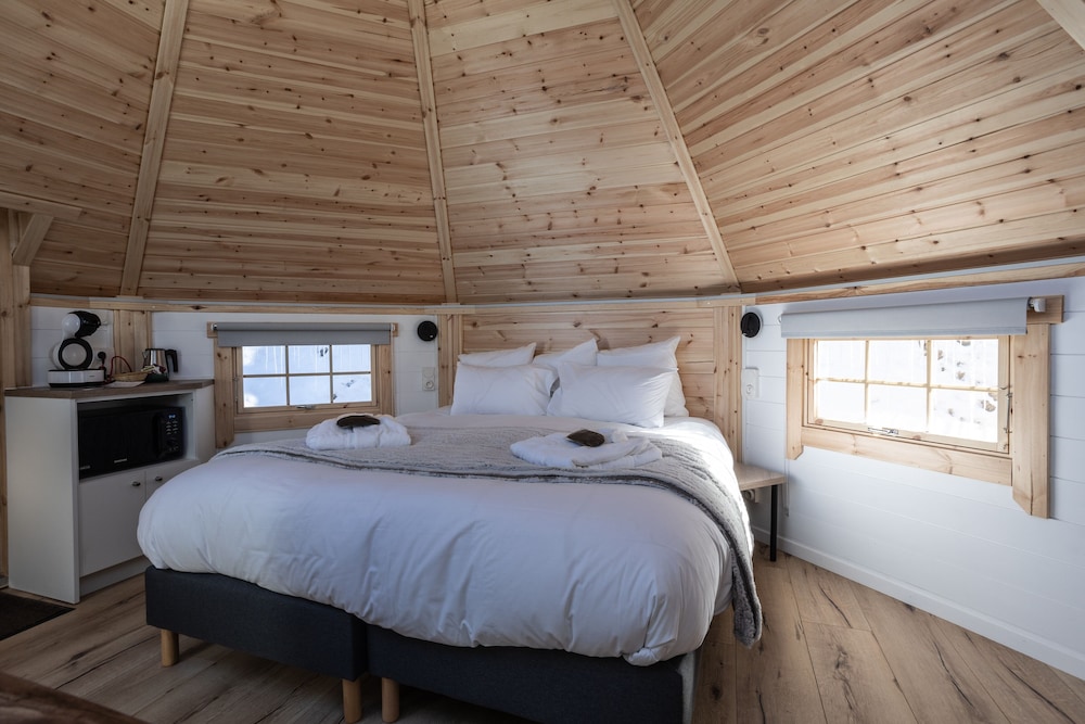 Stay in one of the 9 uniquely decorated guestrooms featuring fireplaces and heated floors. Your Tempur-Pedic bed with premium bedding promises a restful night. Modern amenities like flat-screen TVs and complimentary Wi-Fi keep you entertained and connected.