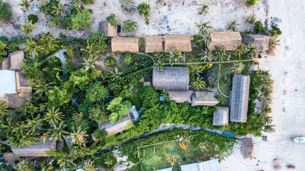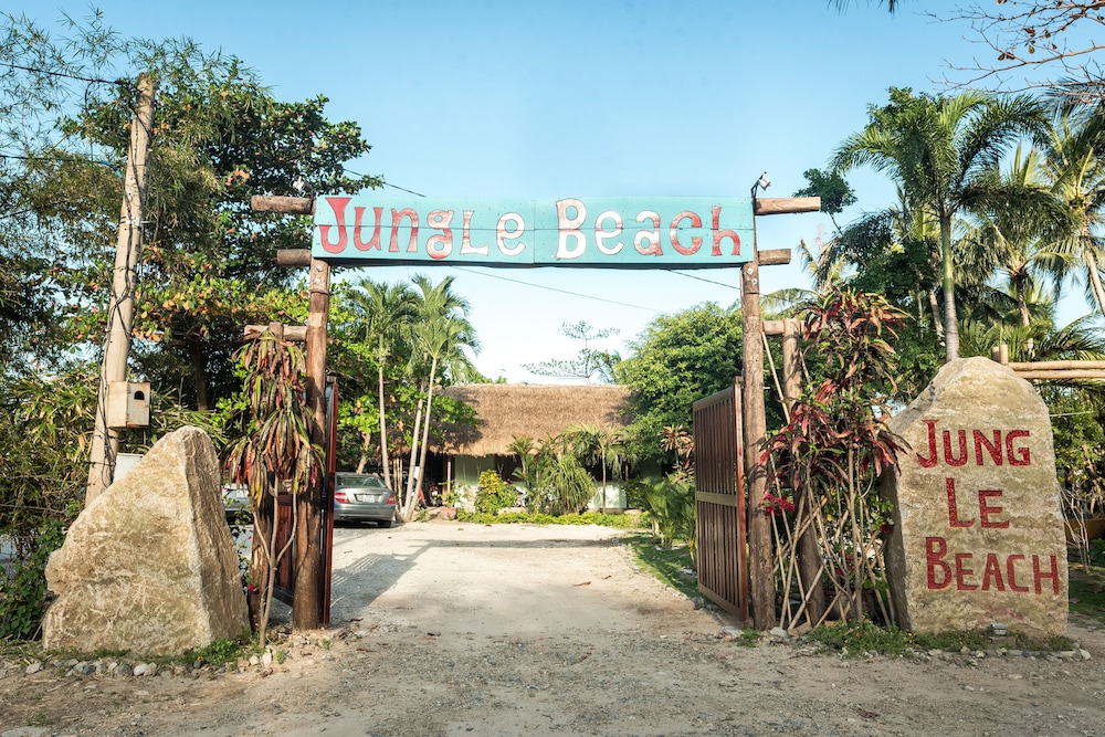 Take in the serene views of the garden at Jungle Beach, a perfect spot to unwind and relax.