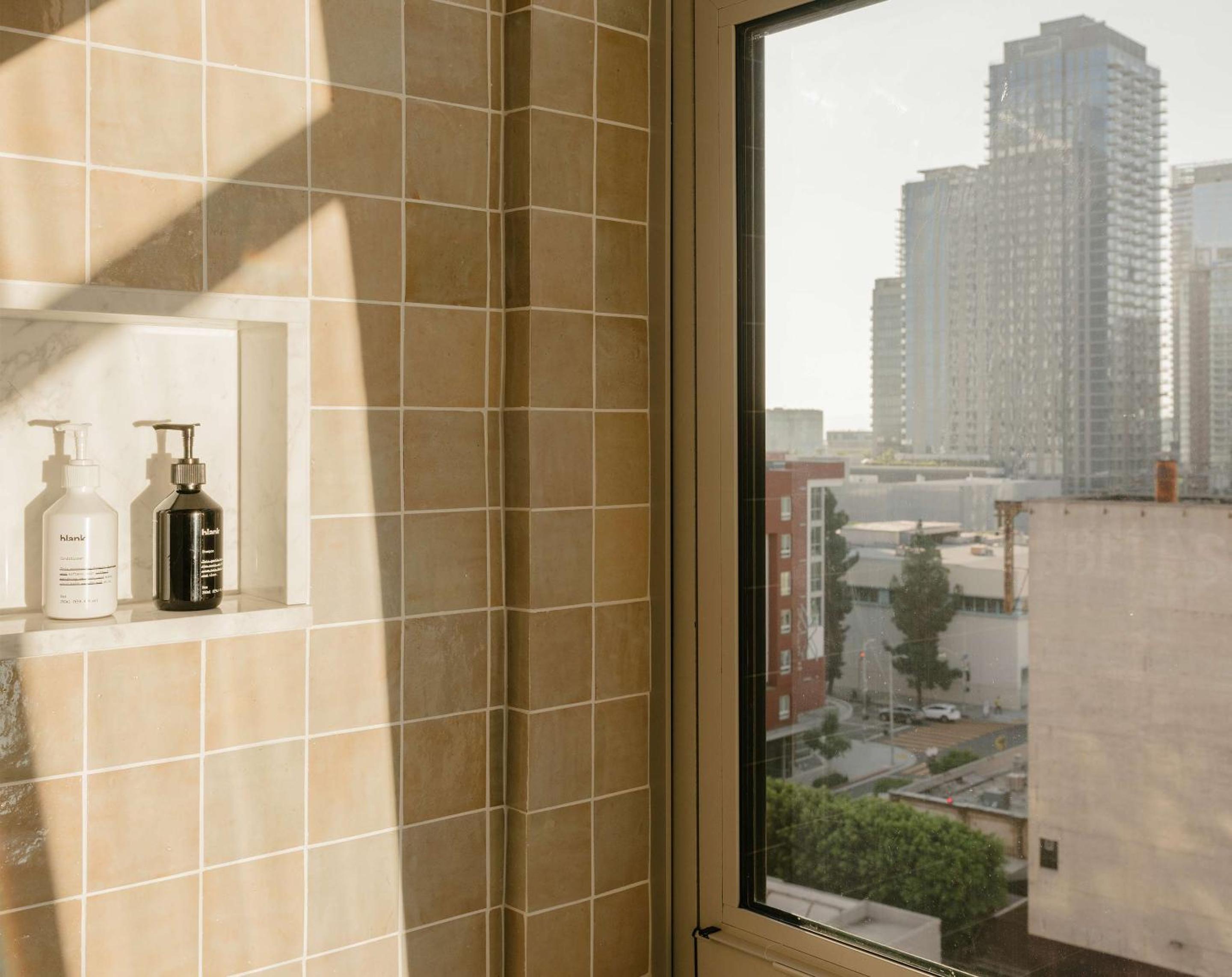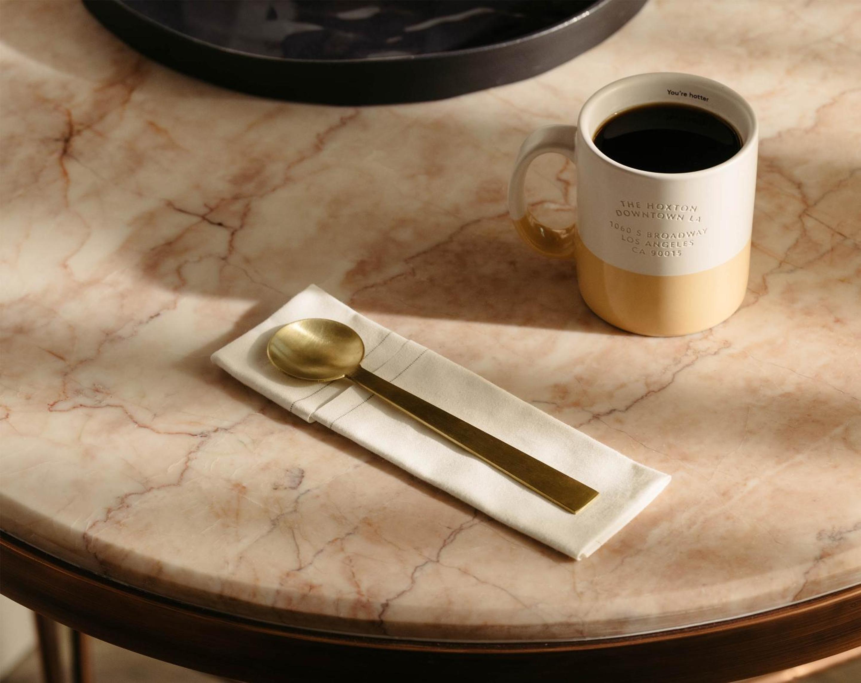 What a little gem in downtown LA! The hotel has the coolest vibe as soon as you walk in. Great music, friendly staff, cute restaurants. The design of this hotel is just perfect! The hallways are quiet and the rooms are so inviting. The attention to detail in the rooms is truly unmatched. The decor is cozy and chic, beds are just the right firm, pillows perfect and the touches of gold and brass just tie everything in. They have the cutest kettles for coffee, mugs for coffee with the sweetest messages and etched green glasses for your wine. They even provide a real wine opener! Hidden premium mini fridge stocked with water and milk for coffee. The shower is large and the rain shower head is probably the best I’ve ever experienced! Seriously a true delight! I can’t wait to come back again when we are back in town! The Hoxton has thought of everything! Love it!