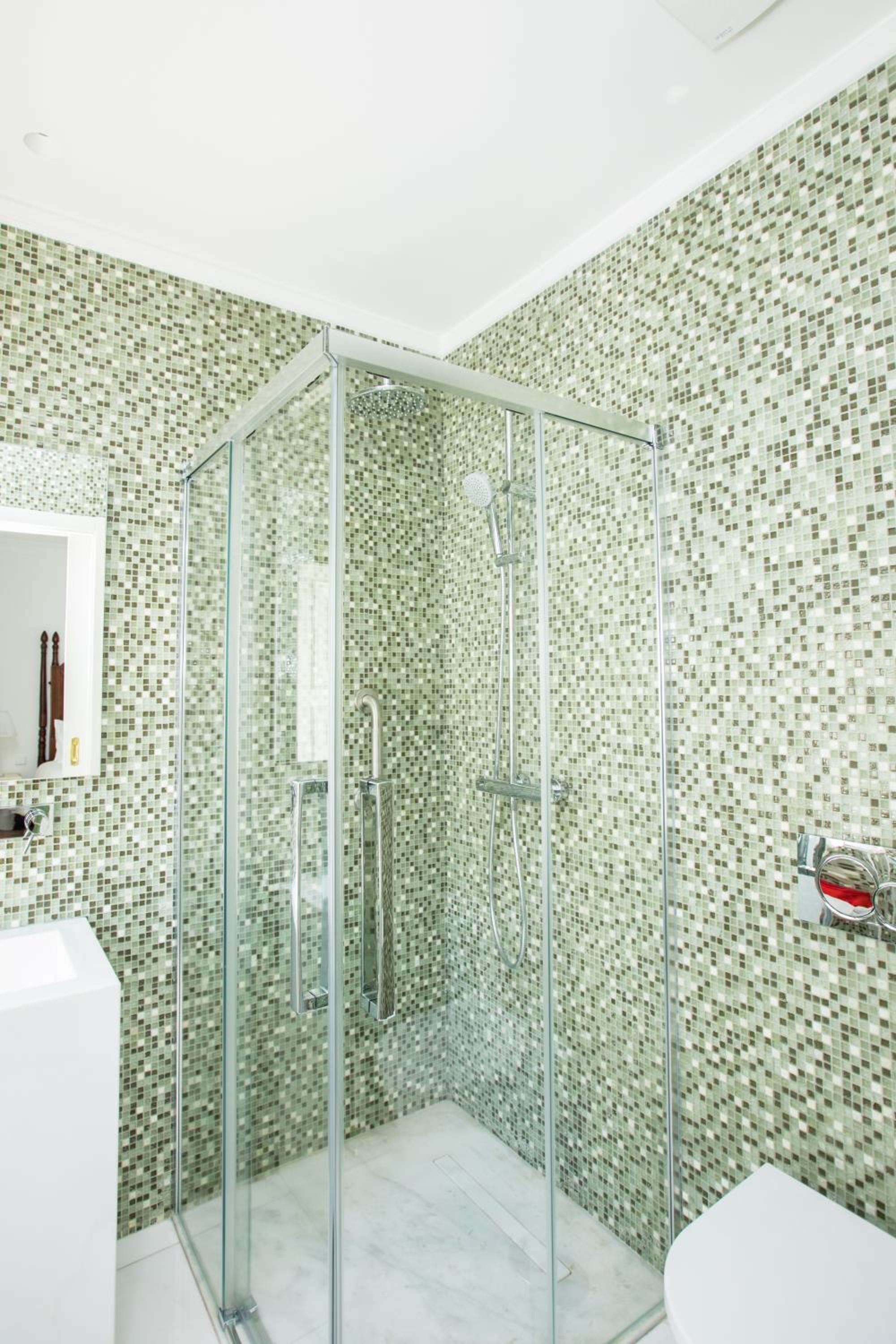 The family rooms at the homestay are elegantly designed and equipped with everything you need for a relaxing stay. From plush bed linens to a private bathroom with a walk-in shower and bathrobes, each unit also features a flat-screen TV, air conditioning, and some even offer a charming balcony.