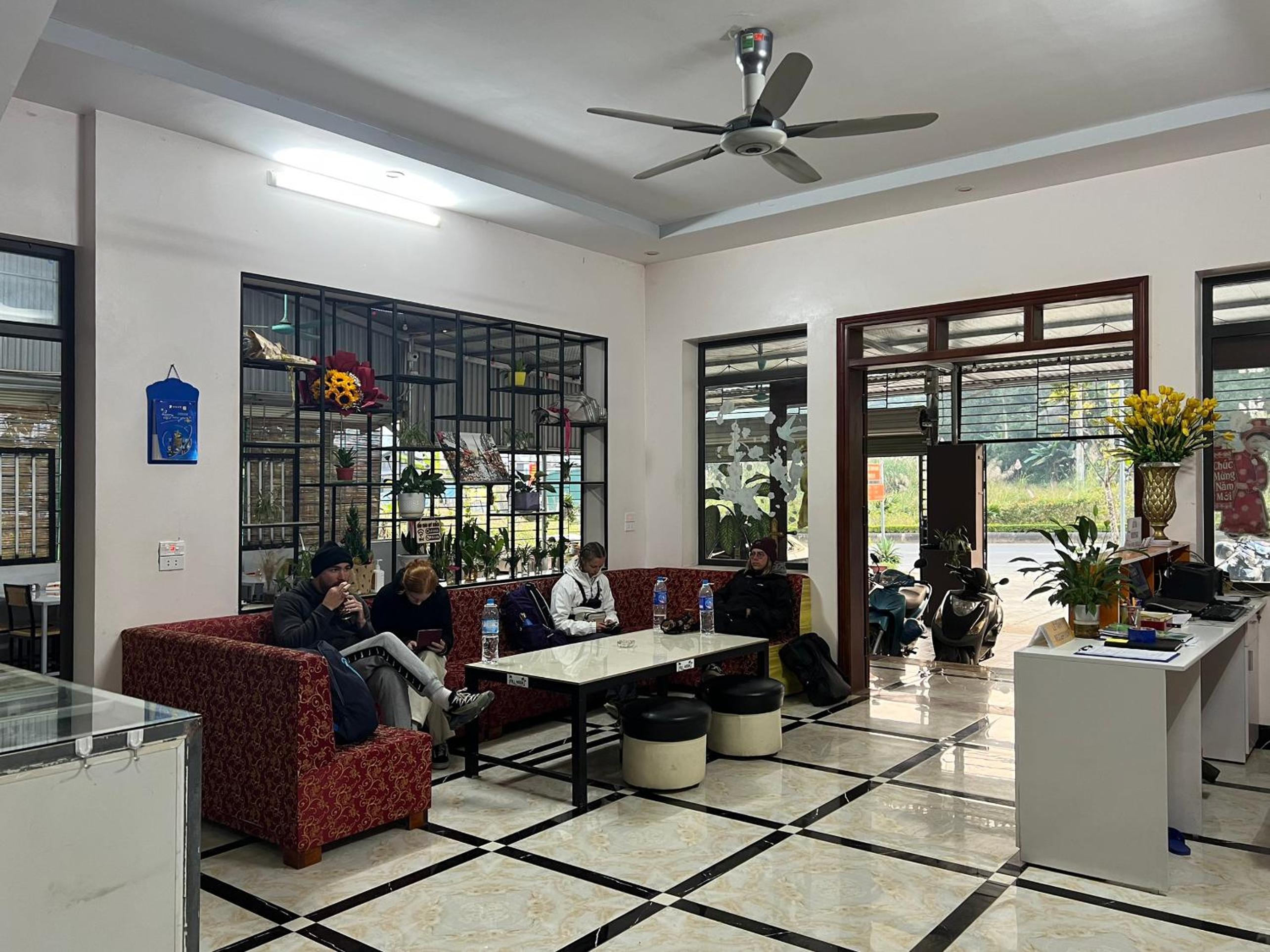 We booked a bus to Cao Bang by the hotel. The receptionist told us that it's at 7:30 am but at 6:50 in the morning he knocked on the door and say that we should be ready because the bus arrives now. He refused us the included breakfast. At the end, the bus arrived at 7:20.