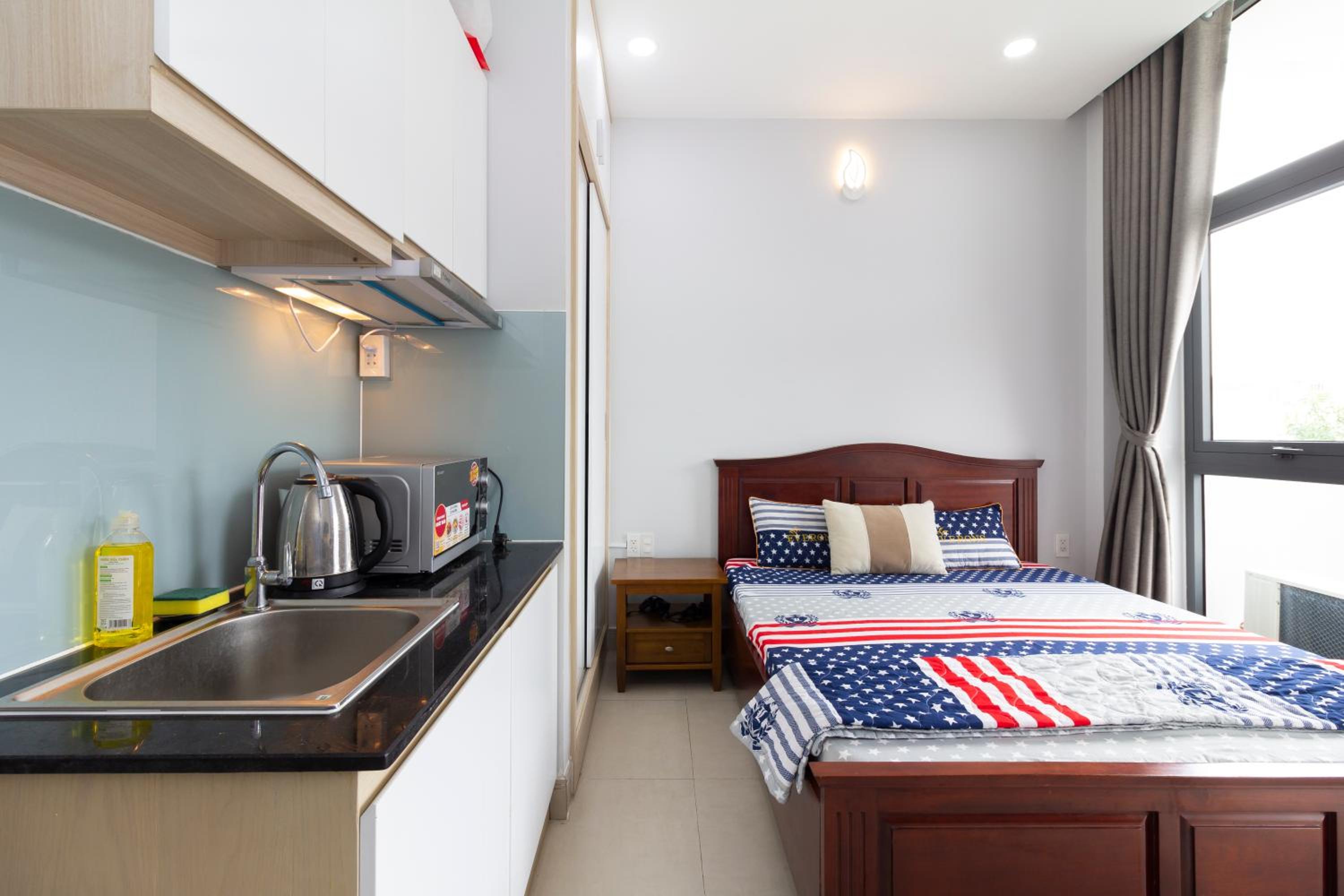 A very spacious, clean and comfortable apartment located in district 2. The Nhà Ga Rạch Chiếc (Rach Chiec) metro station is a 10 minute walk and is only one station from An Phu and the Vincom mega mall. (You could walk - 25-30 minutes), and Ben Than market is 6 stations away. Pháp viện Minh Đăng Quang buddhist temple is a 10 minute Grab ride. The owner provides a lot of information about the local area and the accommodation. There is a great Indian restaurant very near the hotel and many Vietnamese style food stalls and convenience stores.