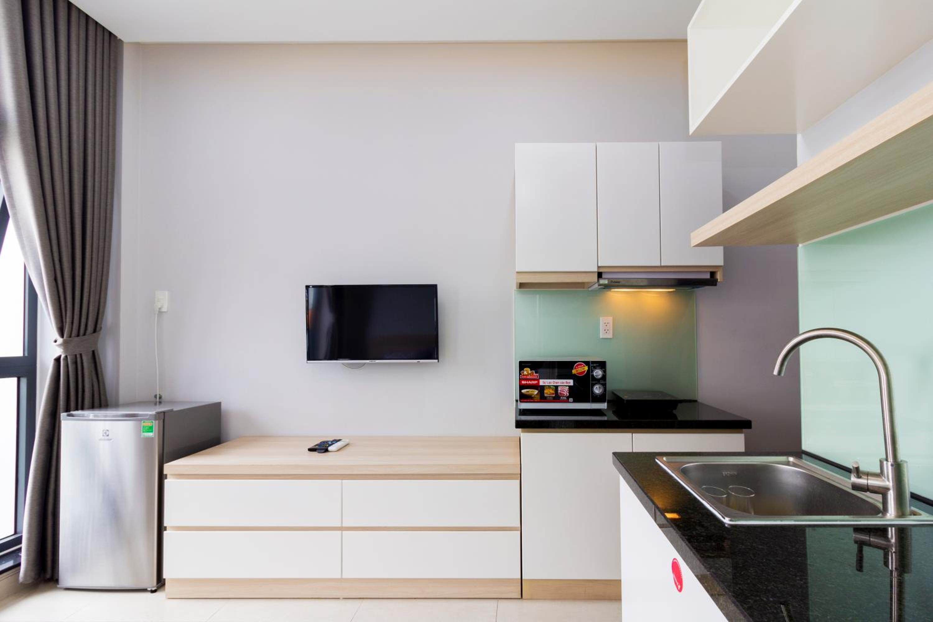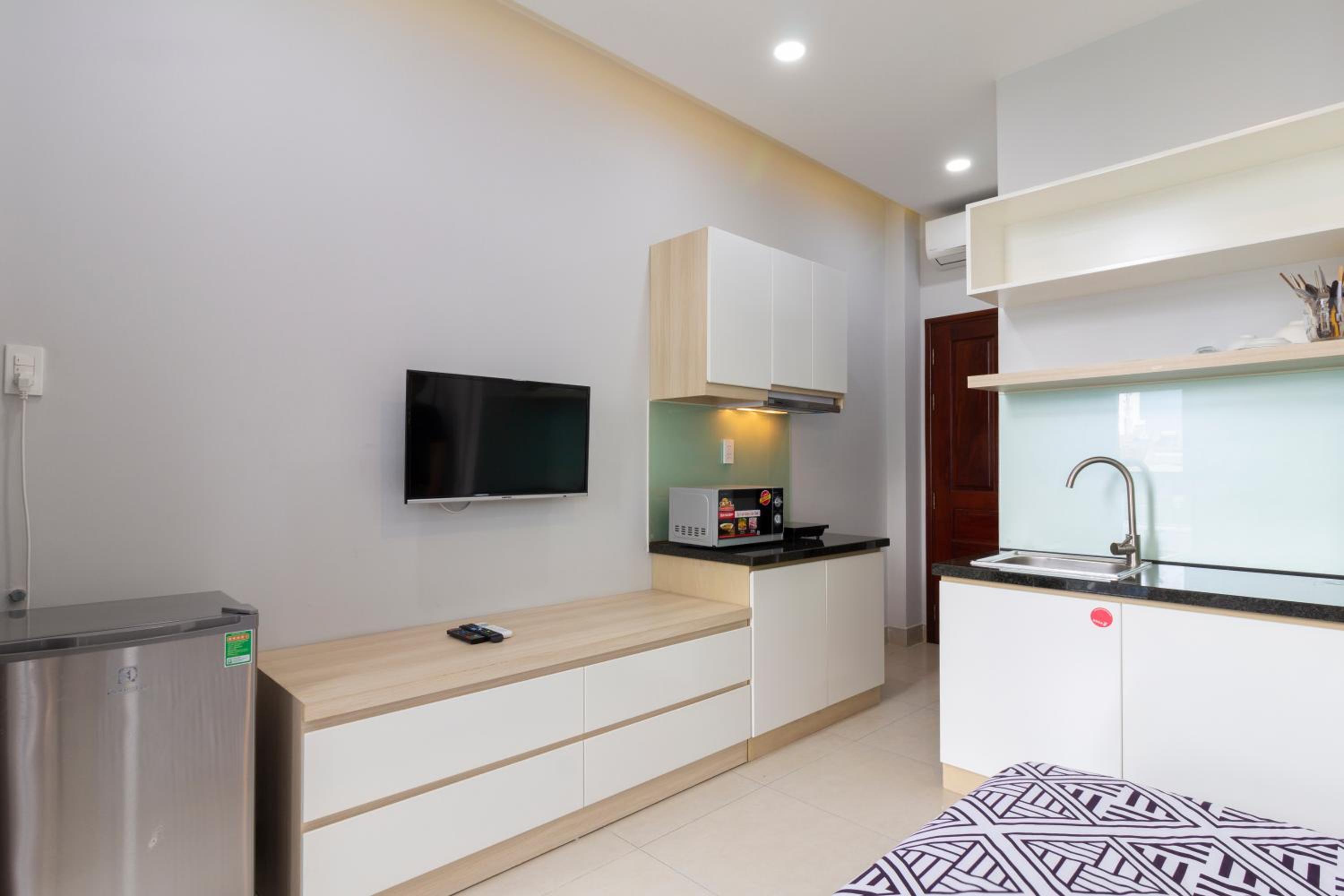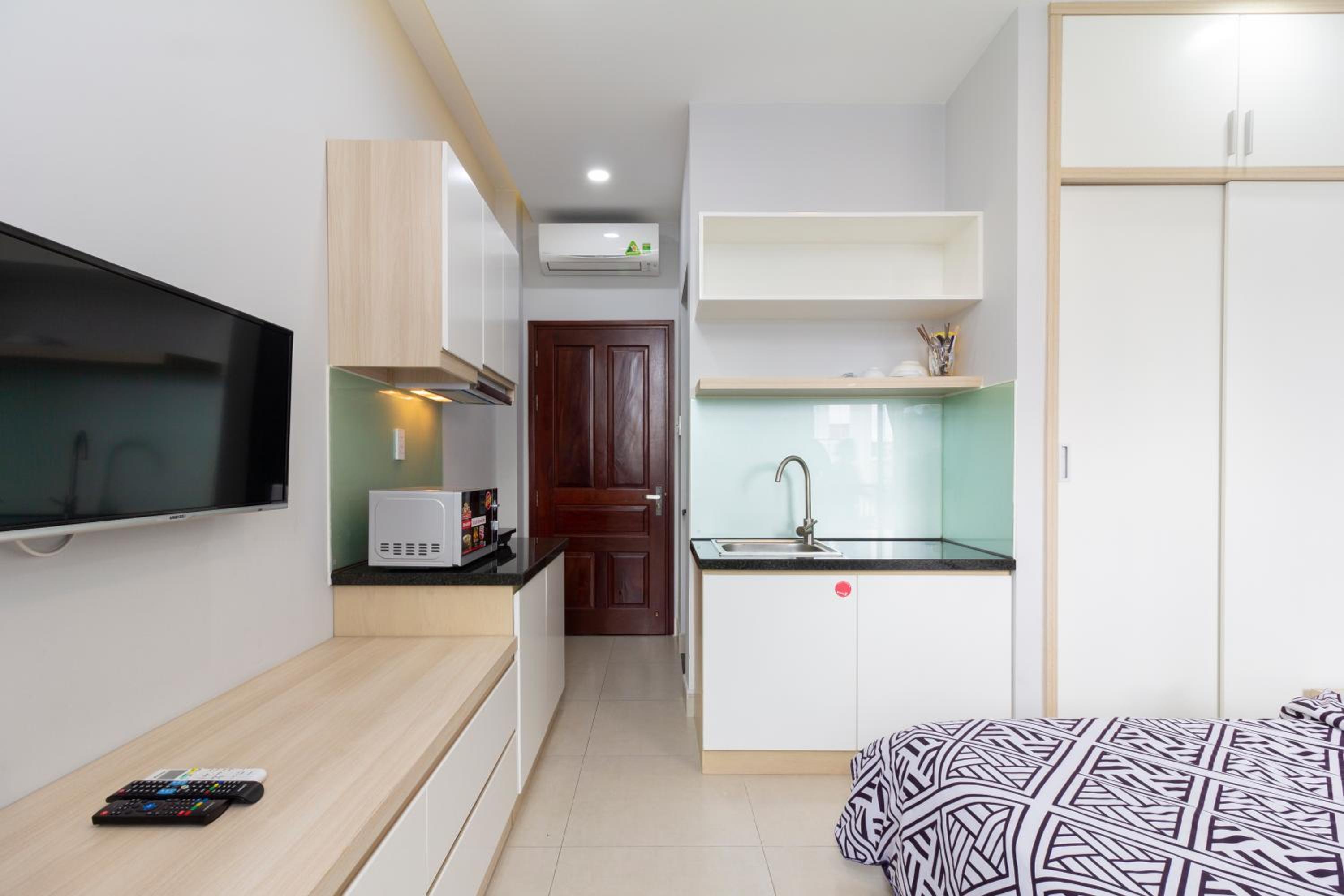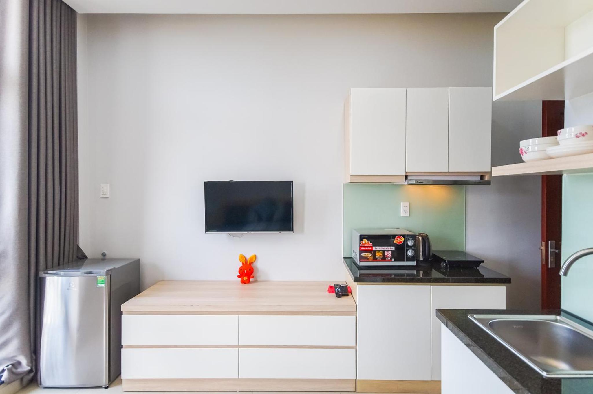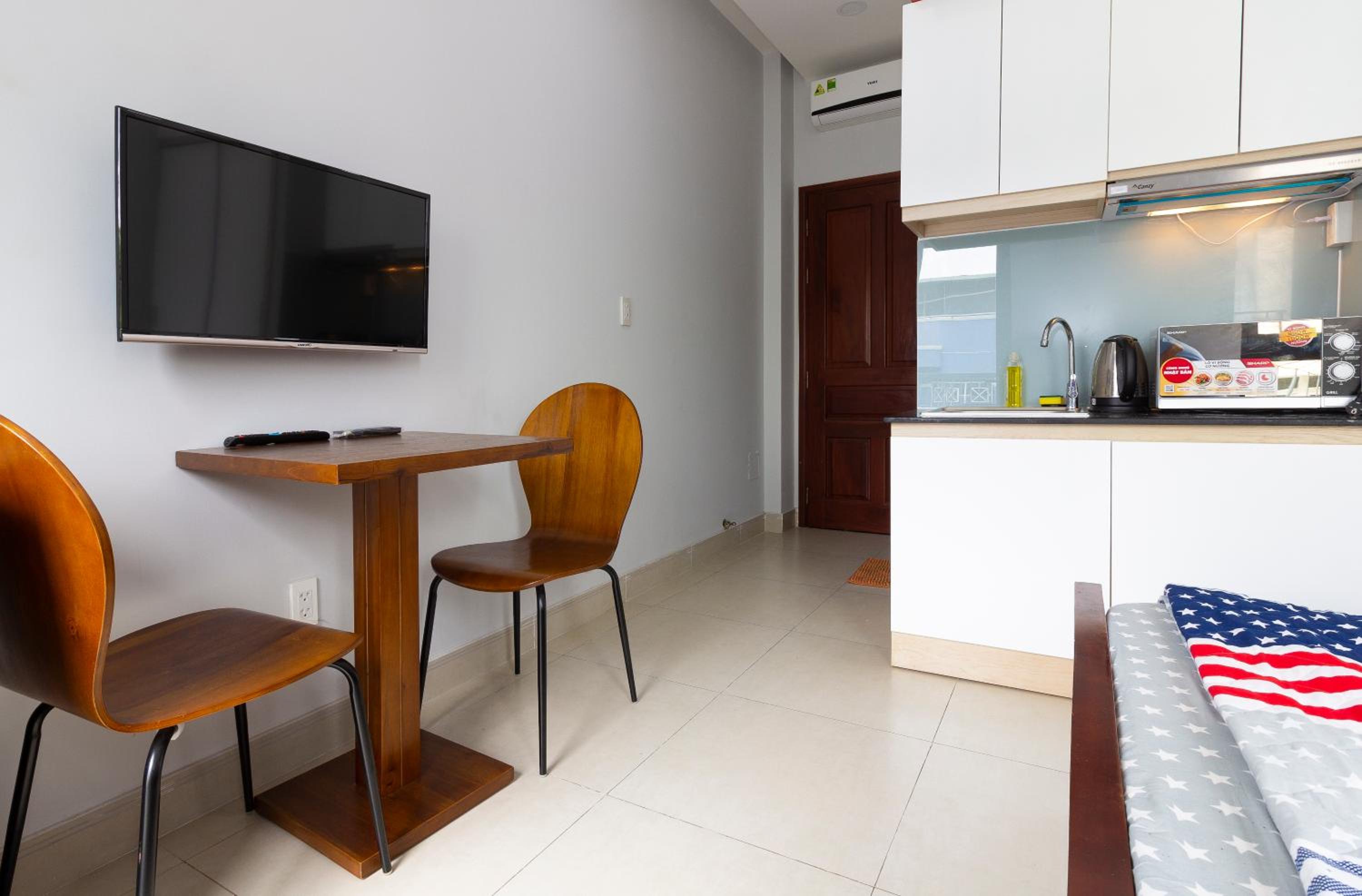 Modern Amenities: GEM Apartment offers a fully equipped kitchen, flat-screen TV, and a private bathroom with walk-in shower and slippers. Some units even have balconies or patios with river views, providing a serene setting for guests.