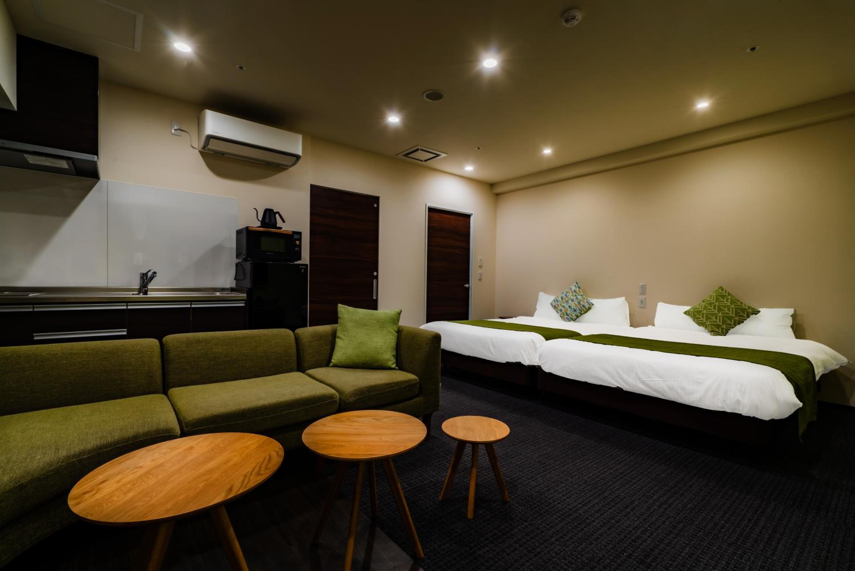 Huge apartment, cool tatami area, biggest bed I’ve ever seen. Staff were very helpful, and I appreciated the 50% off sale they were running. Stylish bathroom and a fully equipped kitchen that I didn’t use 😂 would be perfect for a family or big group to stay in
