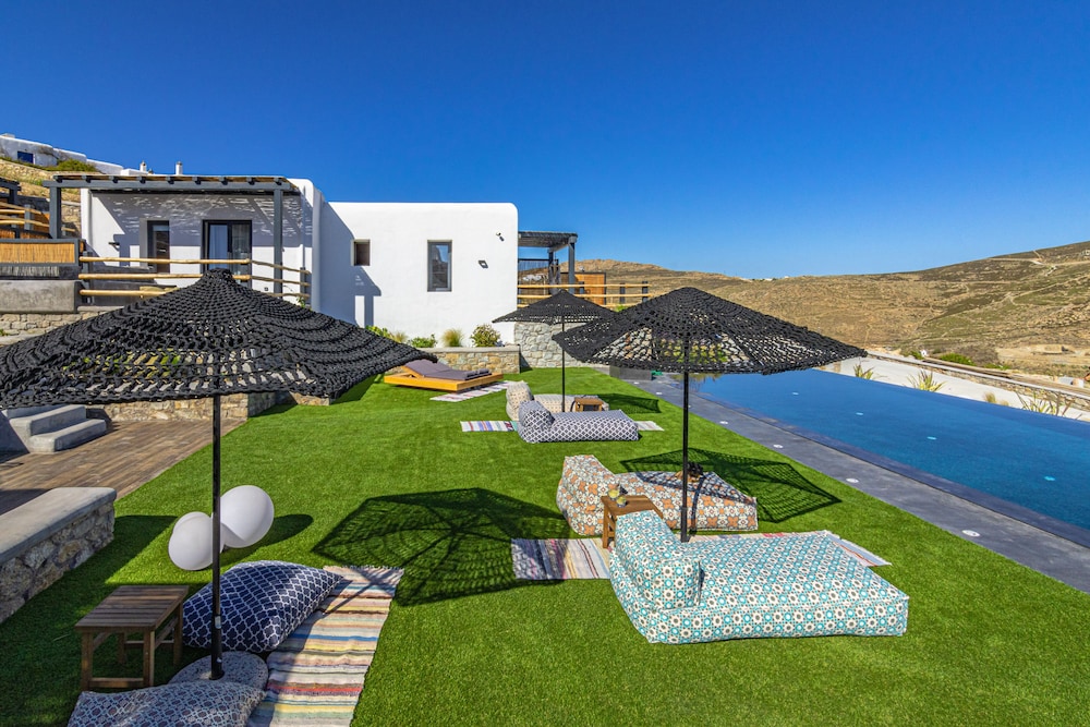Enjoy scenic views from the terrace and garden at our micro-boutique hotel in Mykonos.