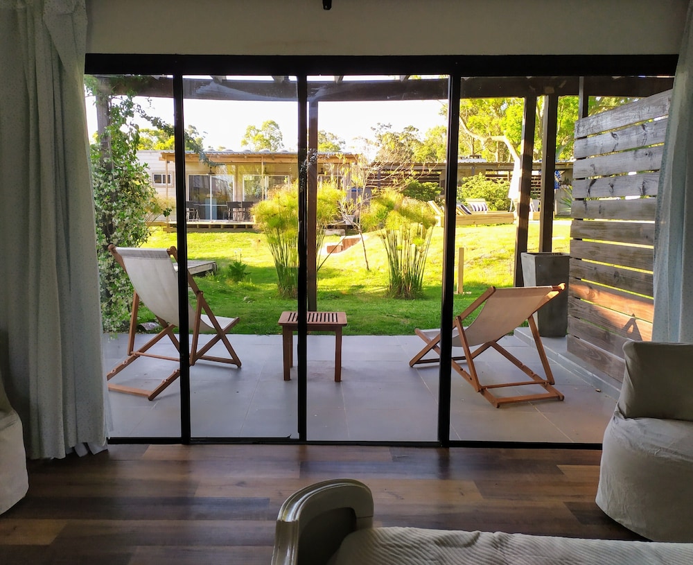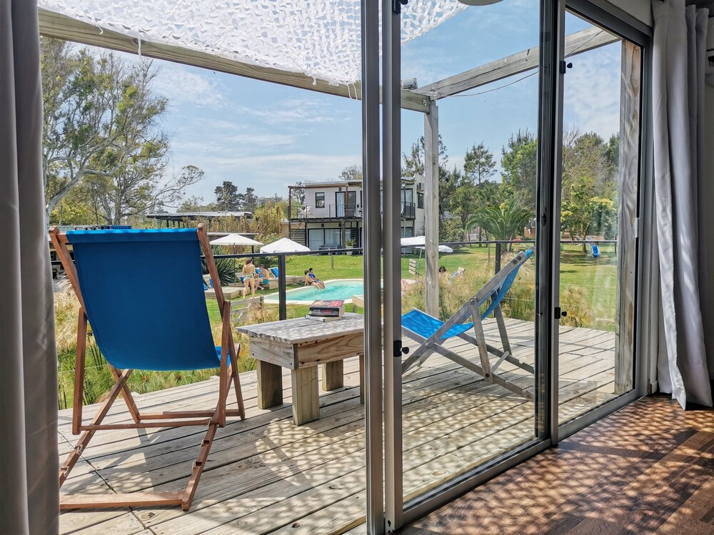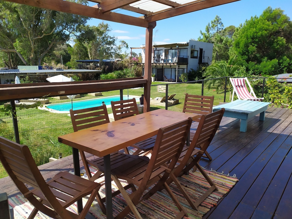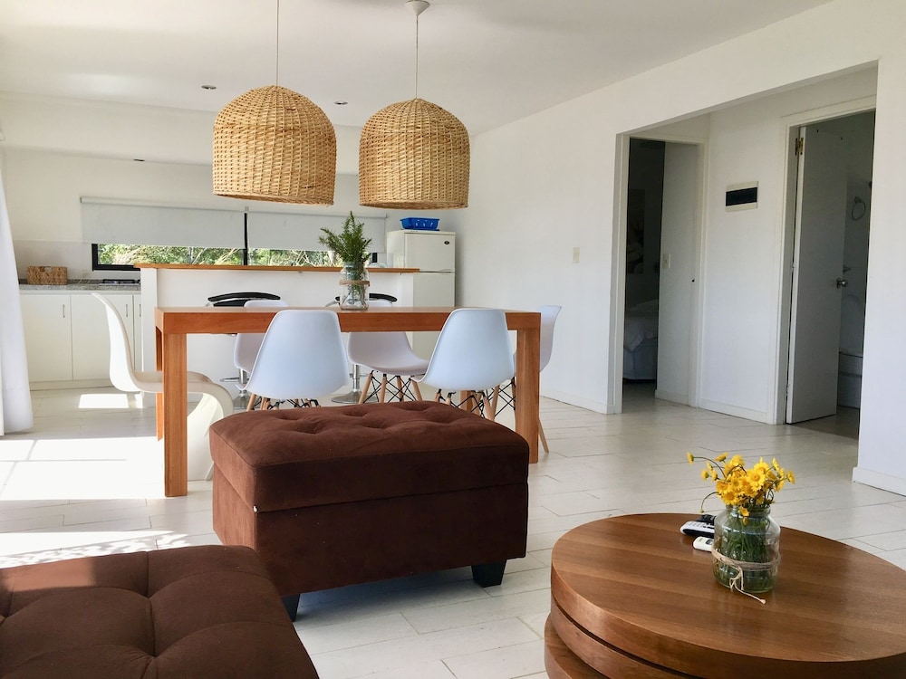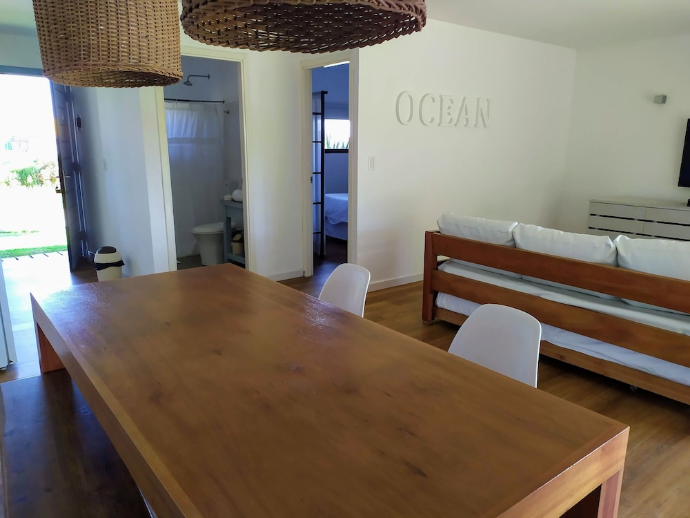 El lugar es precioso, las instalaciones muy lindas y el personal súper atento. Yo vine en ómnibus y hay uno que te deja bastante cerca. Para ir al súper podés caminar por la playa y ni se nota que caminaste algunos kilómetros. Además, el personal te envía datos de restaurantes que hacen delivery.