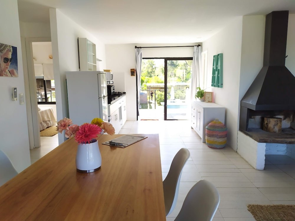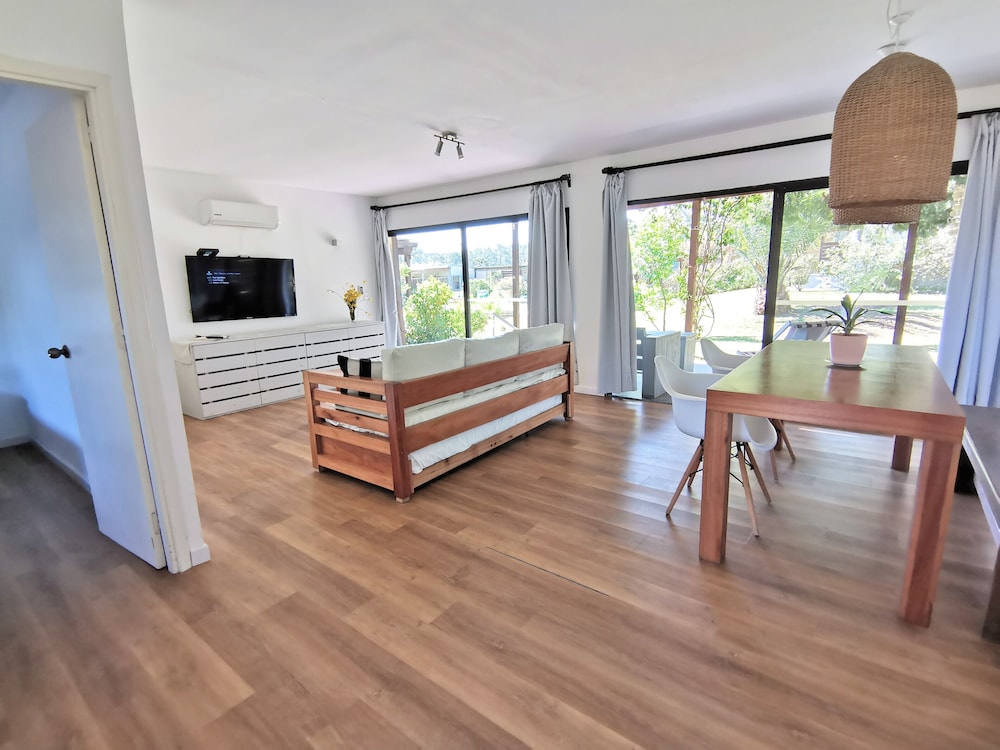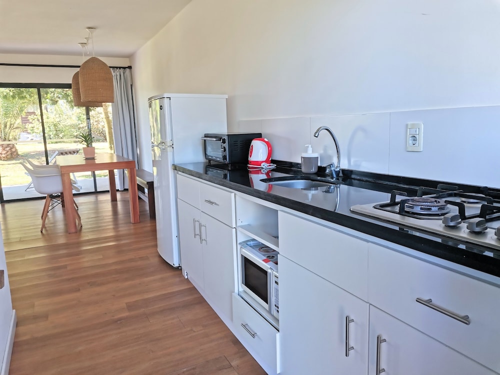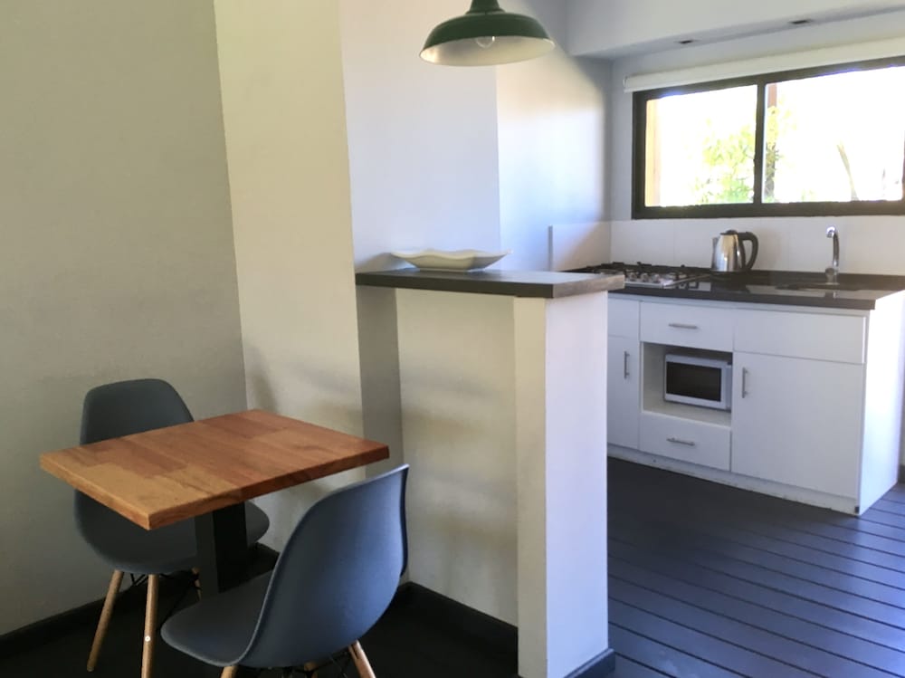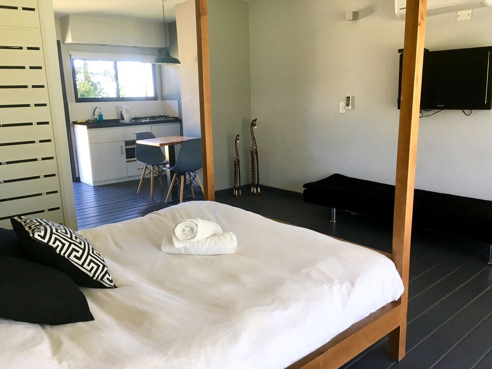 El lugar es precioso, las instalaciones muy lindas y el personal súper atento. Yo vine en ómnibus y hay uno que te deja bastante cerca. Para ir al súper podés caminar por la playa y ni se nota que caminaste algunos kilómetros. Además, el personal te envía datos de restaurantes que hacen delivery.