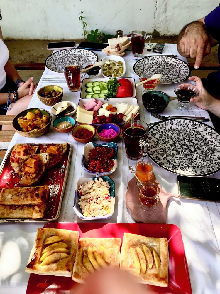 Görkem Hanımın kendi elleriyle hazırladığı kahvaltılar muhteşem. Doğal ürünlerden hazırlanmış bir çok çeşidin olduğu kahvaltıda birgün pizza, başka bir gün kıymalı börek yiyebilirsiniz :)