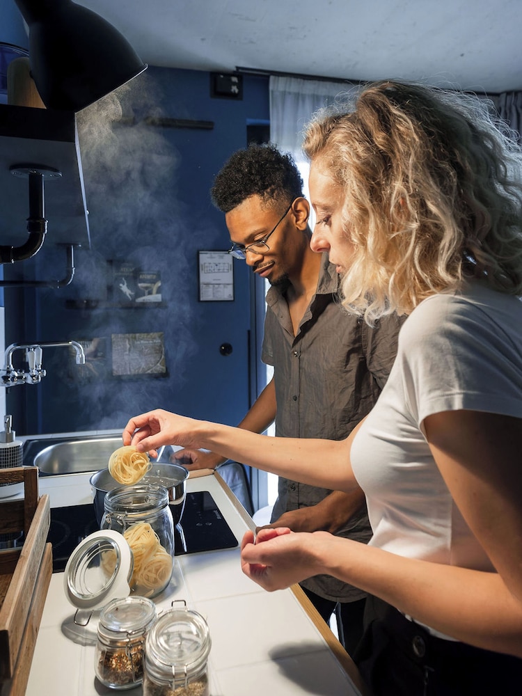 Derrière une grande porte cochère, deux bâtiments modernes un dédié au Co working sur plusieurs étages avec des lieux de vie. Et un autre ou les chambres sont installées au calme avec une décoration soignée et les équipements nécessaires pour passer un un bon séjour. Une belle découverte.