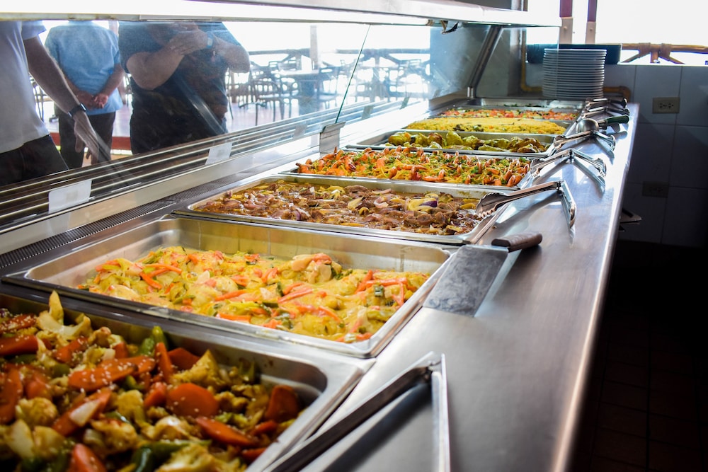 One of the maintenance person advised that the pool was cleaned every day, but when we told him that there were flies and leaves floating on it, he immediately went to clean it: this is the only time in 3 days that we saw pool maintenance at work. Nice touch is the sea water pool on the reef. Slippery but good photos to be taken. The food was ok, mostly fried, good slim french fries and vegetables. Breakfast buffet was not heated. Free access to juice and soda machine all day.