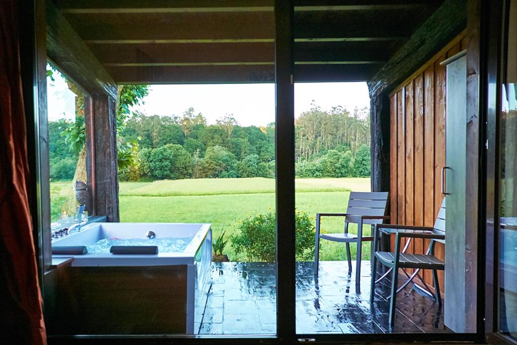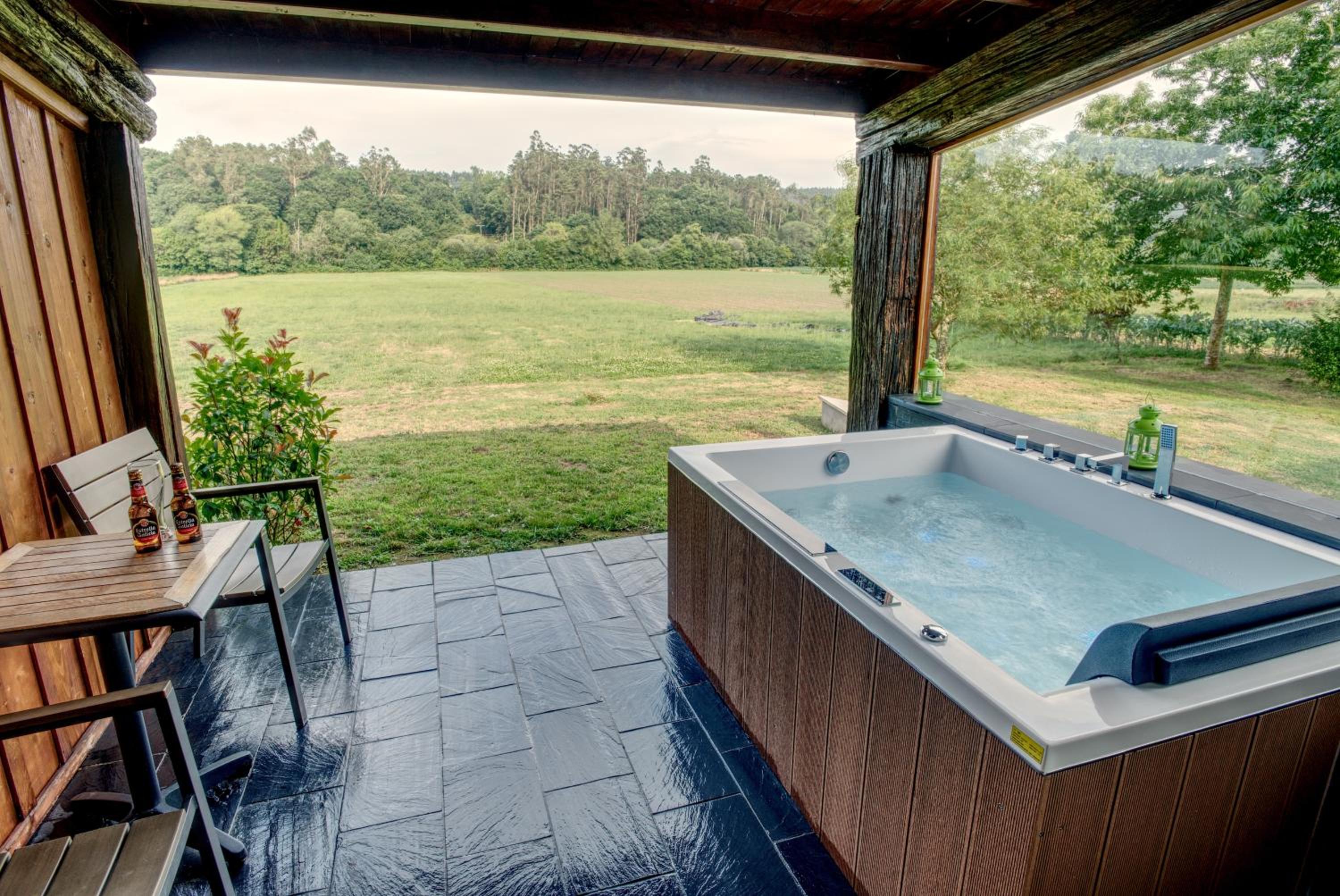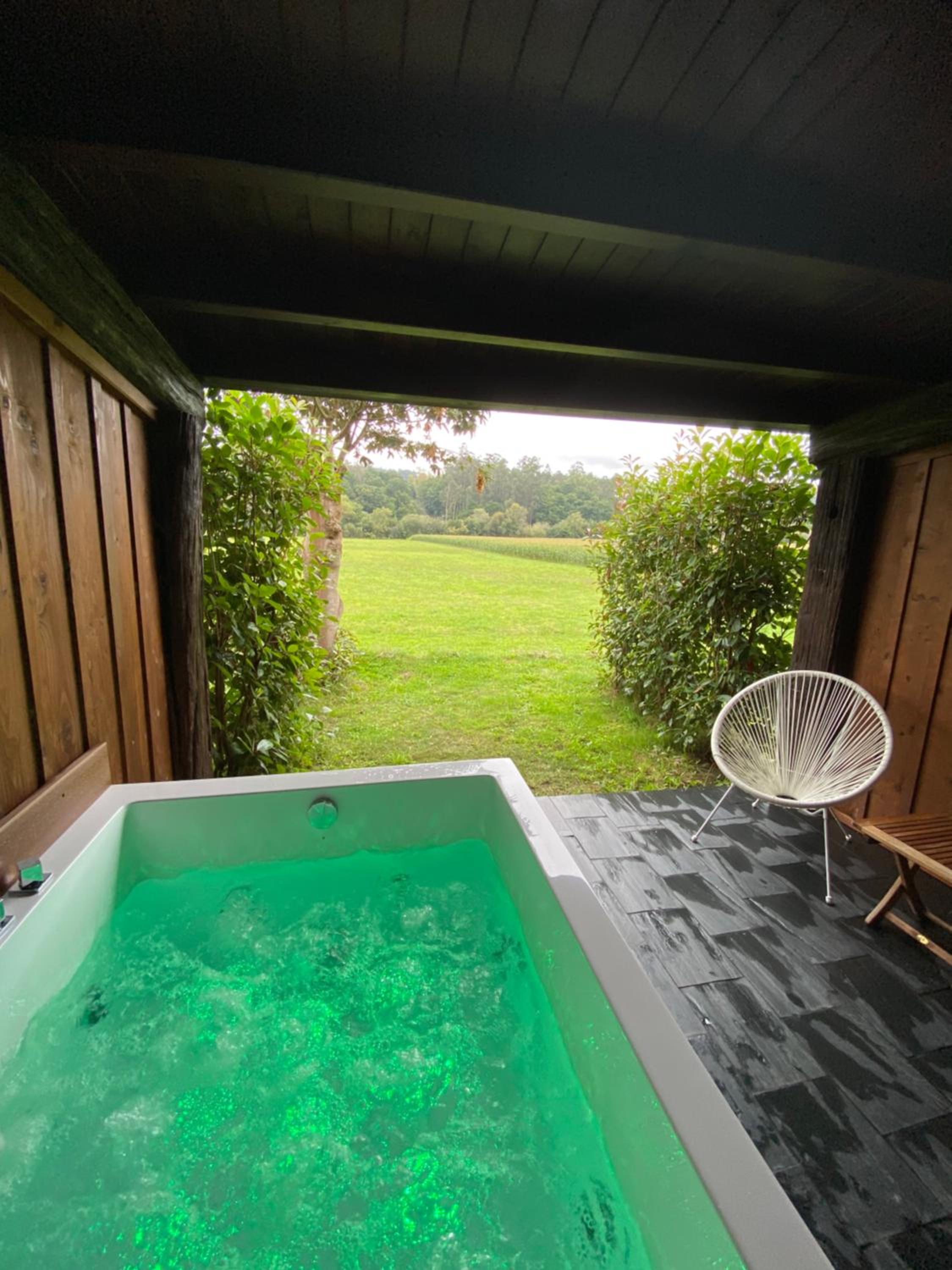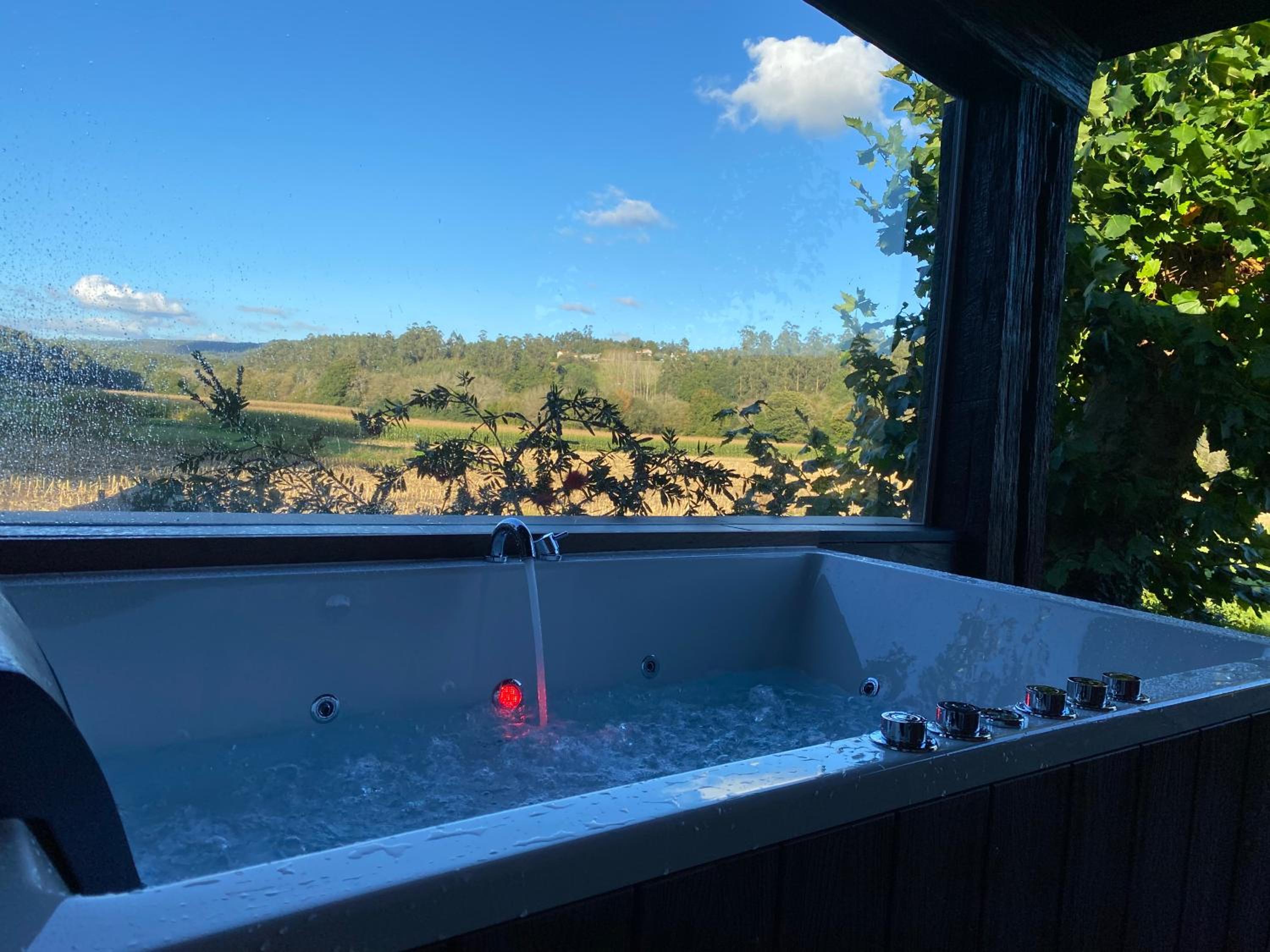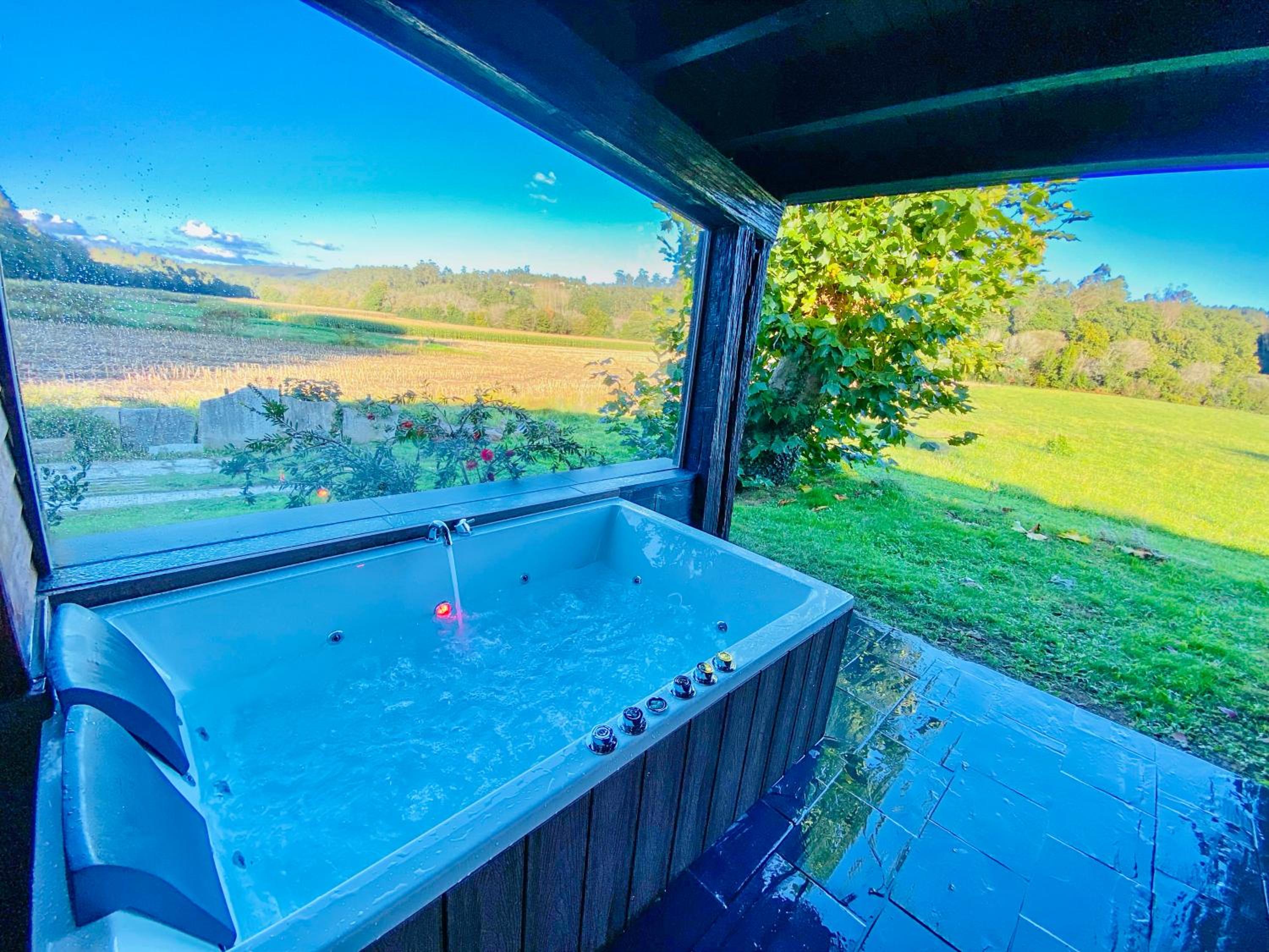 Indulge in a spa bath and hot tub experience at A Carballeira do Tambre, offering a serene environment for unwinding after a day of exploration.