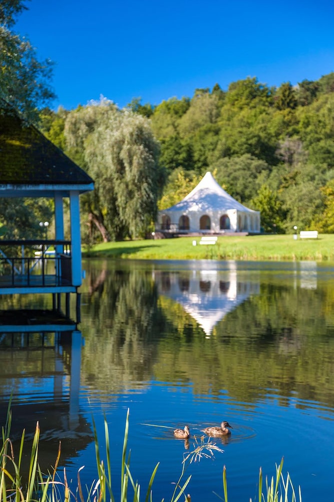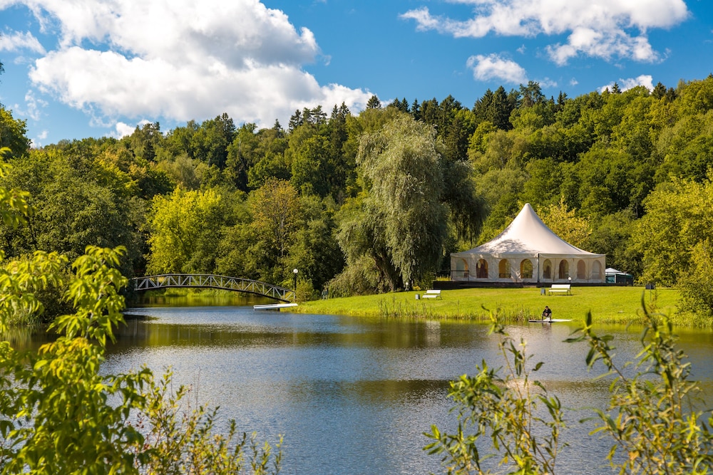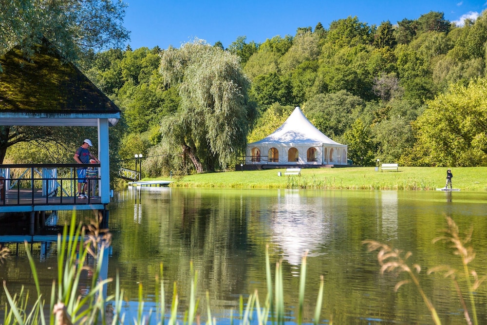 As I've titled Plenernoe Hotel is situated in the peaceful place, ex-sanatorium, in the far far away USSR time. The interior of the hotel is still kept in the style of that time. Lux rooms are quite big, good to get a room with the lake view. Breakfast was good. The main menu in the restaurant: nothing special, some meals a quite testy, like a home made, ask waitress to recommend you which is good to eat today ;) huge territory there you can do walking, seat on benches & enjoy lake view, fresh air, birds signing (summer time, of couse:)). I like that hotel is situated not far away from the Sheremetyevo airport 20-30 min trip. Advise you not to take a taxy in the airport, book the transfer in the hotel. Big shopping center is very close: 10 min driving. Also, close to Planernoe: spa centers, horse riding place.