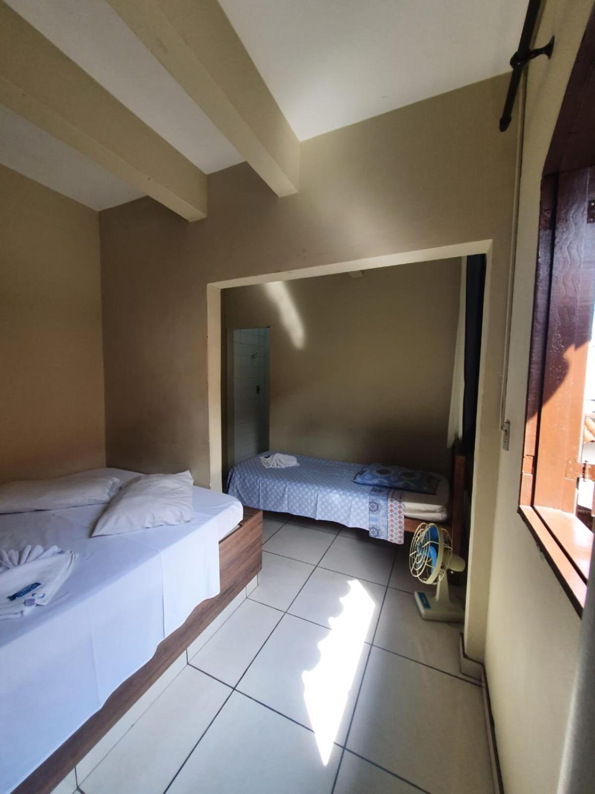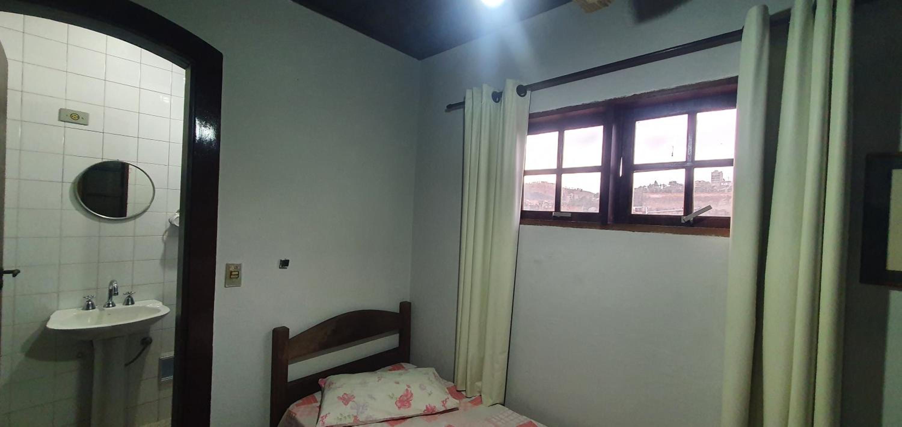 A primeira vez foi reserva via WhatsApp, ficamos num quarto que tinha janela para dentro do próprio hotel e cheirava a mofo. O banheiro era bem pequeno, e com plastico dividindo o chuveiro e enquanto a gente tomava banho ele grudava na gente... uma pessoa maior não caberia.