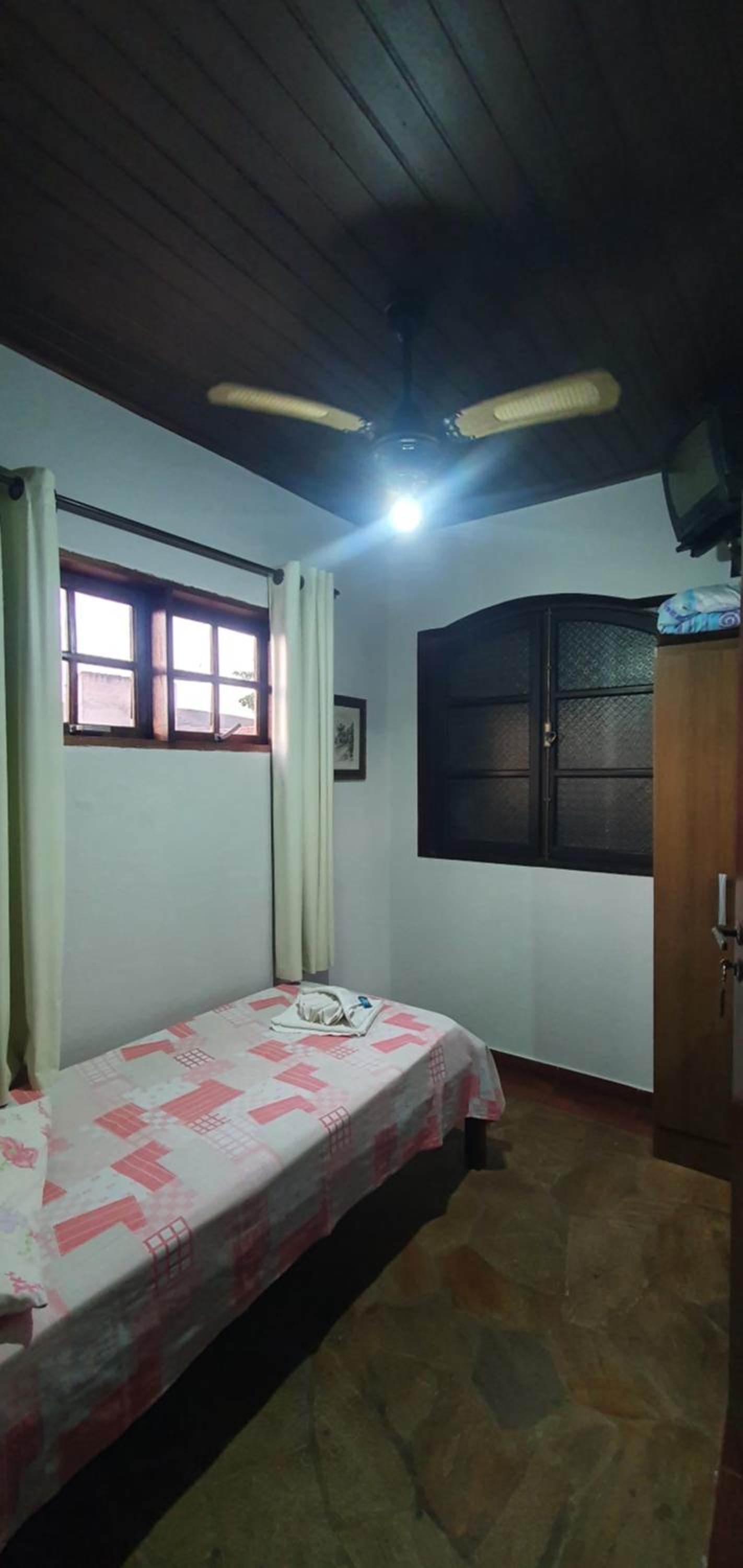 Já na 2ª vez, pedi por um quarto com vista para a rua. O cheiro do quarto estava melhor, mas o lençol da cama estava com duas marcas de queimado por cigarro e, o banheiro, também beeeem pequeno, porém dessa vez com porta sanfonada na divisão da privada com o chuveiro, mas tinha um buraco bem grande e estranho em cima do chuveiro, dando para ver o telhado.