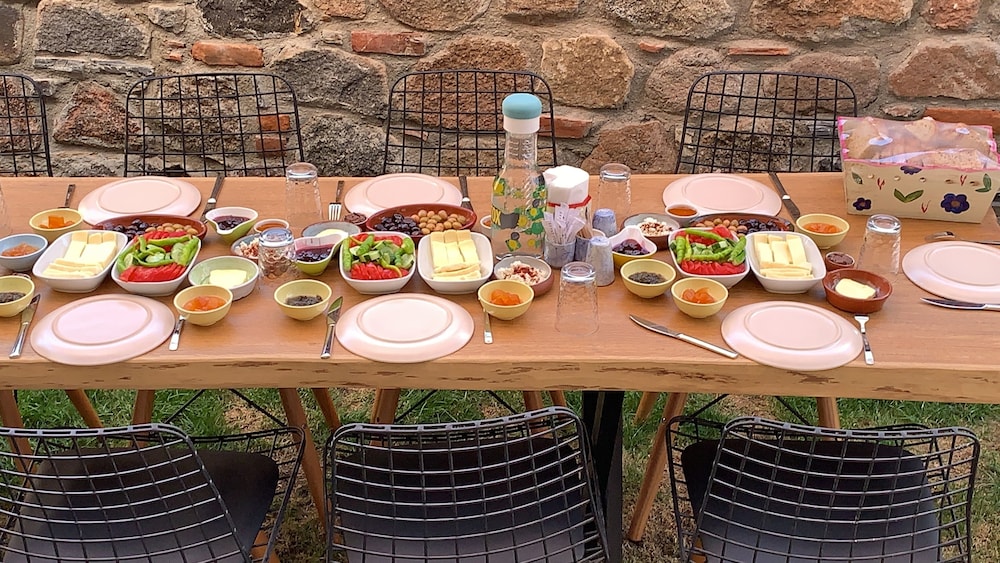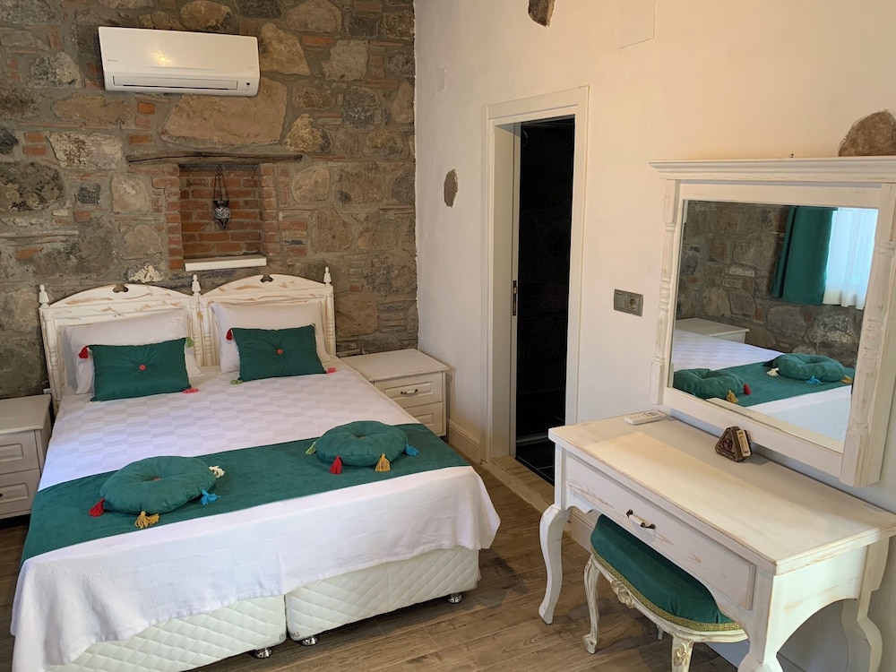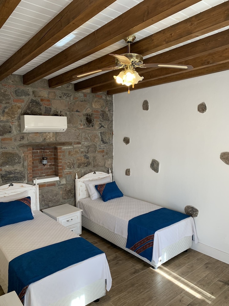 Odalar çok temiz, evlerin taş ev olması çok büyük avantaj uykusu dinlenmesi çok güzel oluyor o yüzden tercih sebebi bence ama havluları 2 3 güne bir değiştiriyoruz dediler bu yönü kötü. Gittiğim tüm otellerde hergün havlu ve çarşaf değiştirilir ve temizlenirde burda o yoktu üzdü. Kahvaltısıda çok güzeldi çeşitli lezzetli idi fakat ekmek isterken gönülsüz ekmek verildi ve normal ekmek sepetinin yarısına kadar doldurup verdi ekmekleri böyle güzel bi yerin bu tür şeylere takılması samimiyeti bozdu bende açıkçası. Bahçe açık hava olmasına rağmen sigara içmek yasaktı