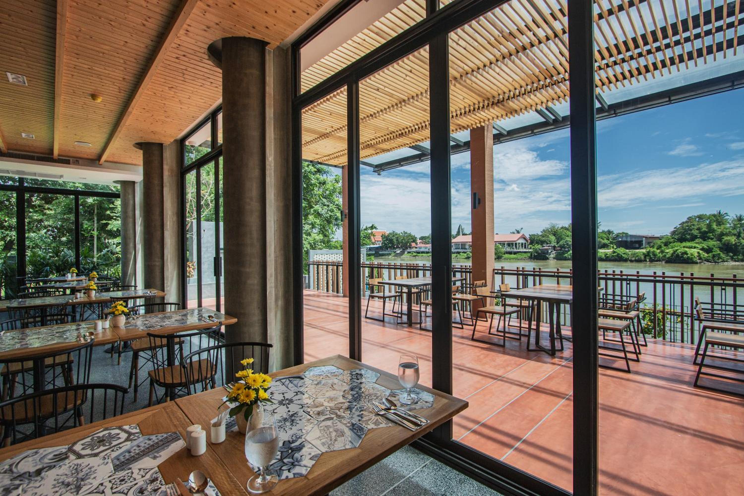 朝食レストランが川を見られて素敵