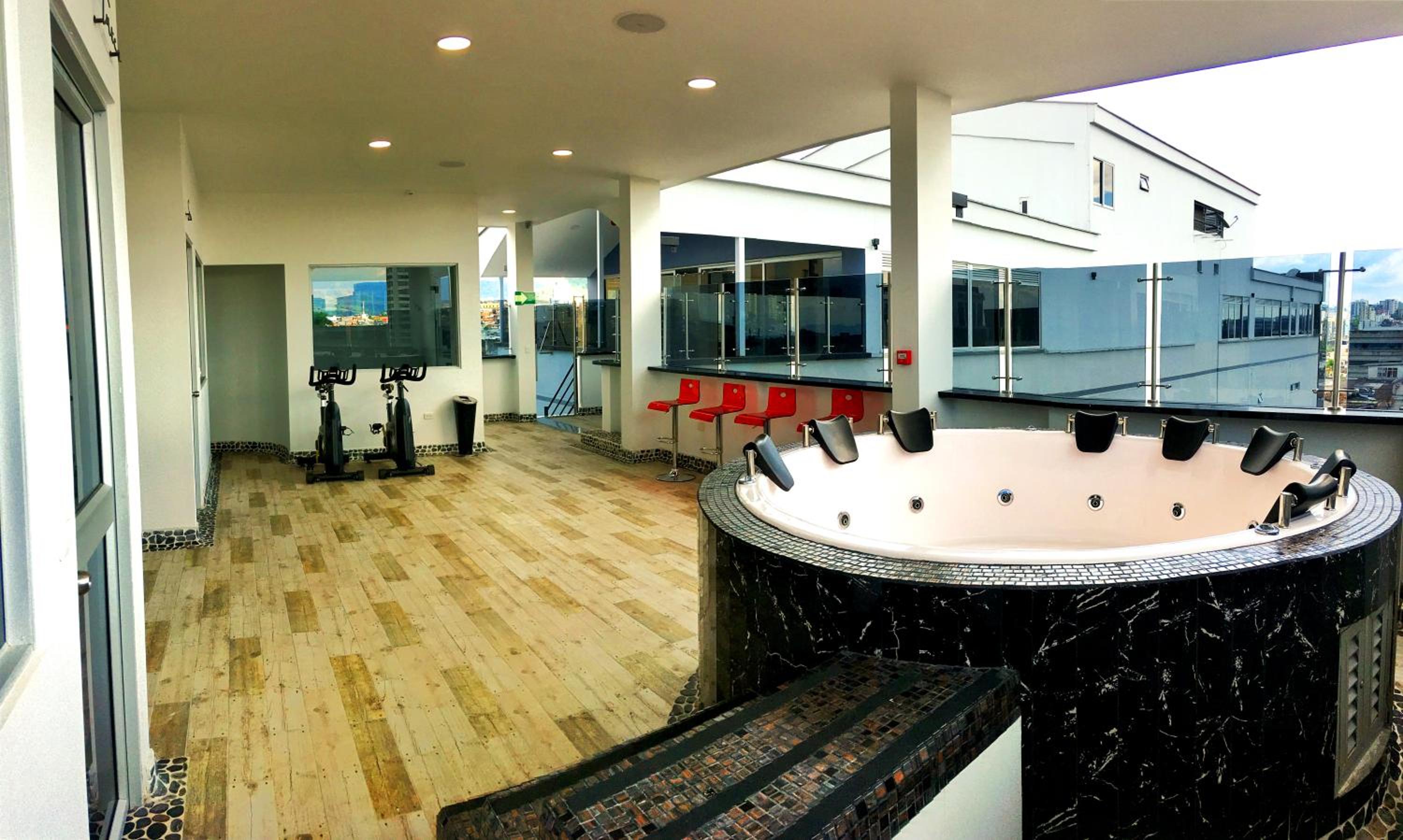 A la hora de hacer la reserva no nos avisaron que ni el jacuzzi ni el sauna estaban en funcionamiento. Hicimos la reserva ahí mismo en el lobby a través de Booking y en ningún momento se les ocurrió decir que justo las estaban reparando, cosa que nos parece deshonesta ya que reservamos ahí por la zona húmeda. Recomendamos preguntar antes de reservar. El agua de la ducha no calentaba prácticamente nada y fluctuaba la temperatura (en ambos dormitorios), bastante regular por no decir mala. El parqueadero no queda en el mismo edificio entonces toca salir del hotel para ir al carro. Las almohadas demasiado altas. La zona algo intimidante. Se escuchó mucho ruido de la calle por las noches (en un 5to piso) hasta más de las 10 pm.