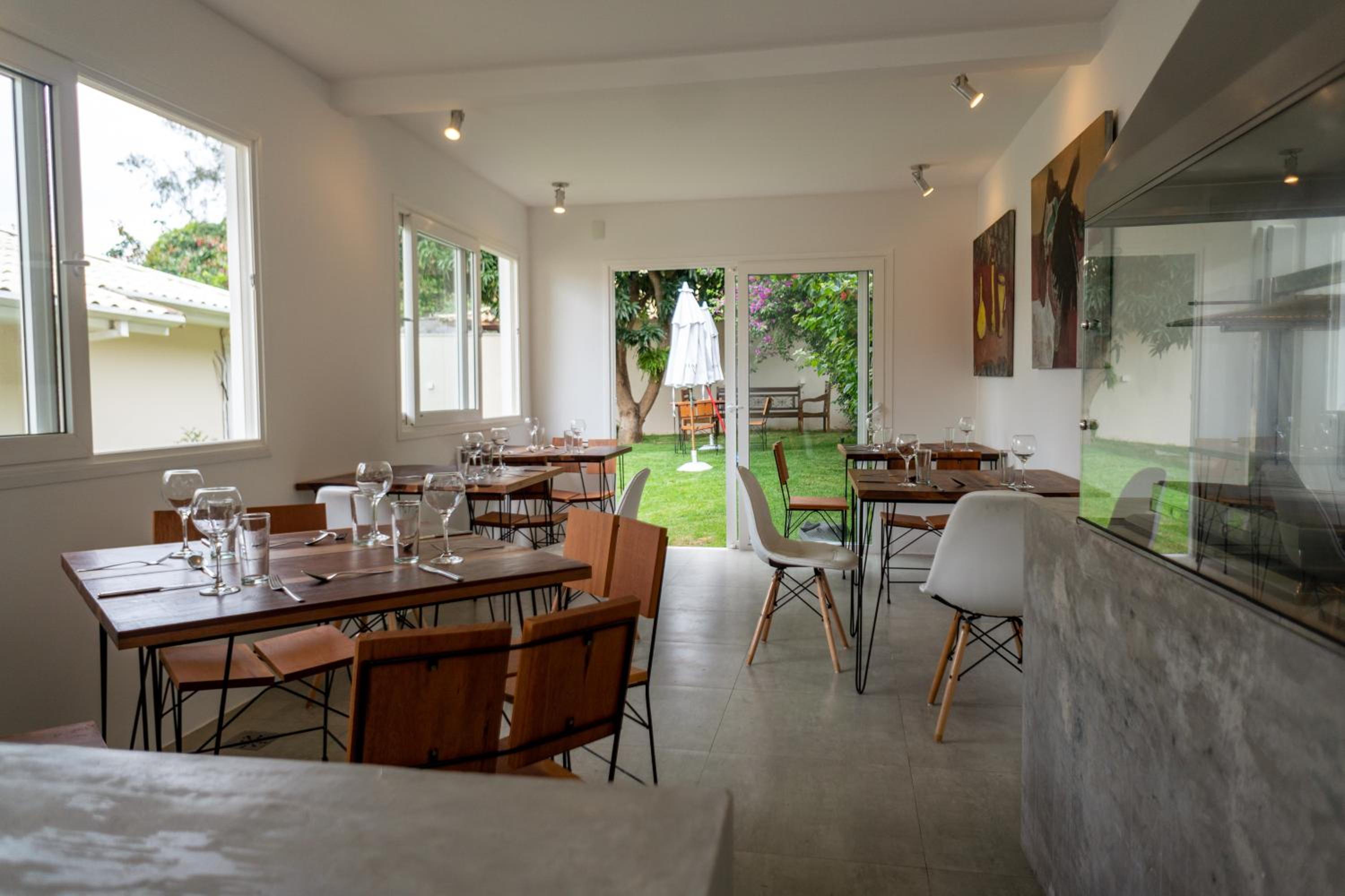 Refeitório do café da manhã, além de pequeno (tive que ficar em fila de espera), fica fora da casa, tendo que pegar chuva e terreno gramado molhado.