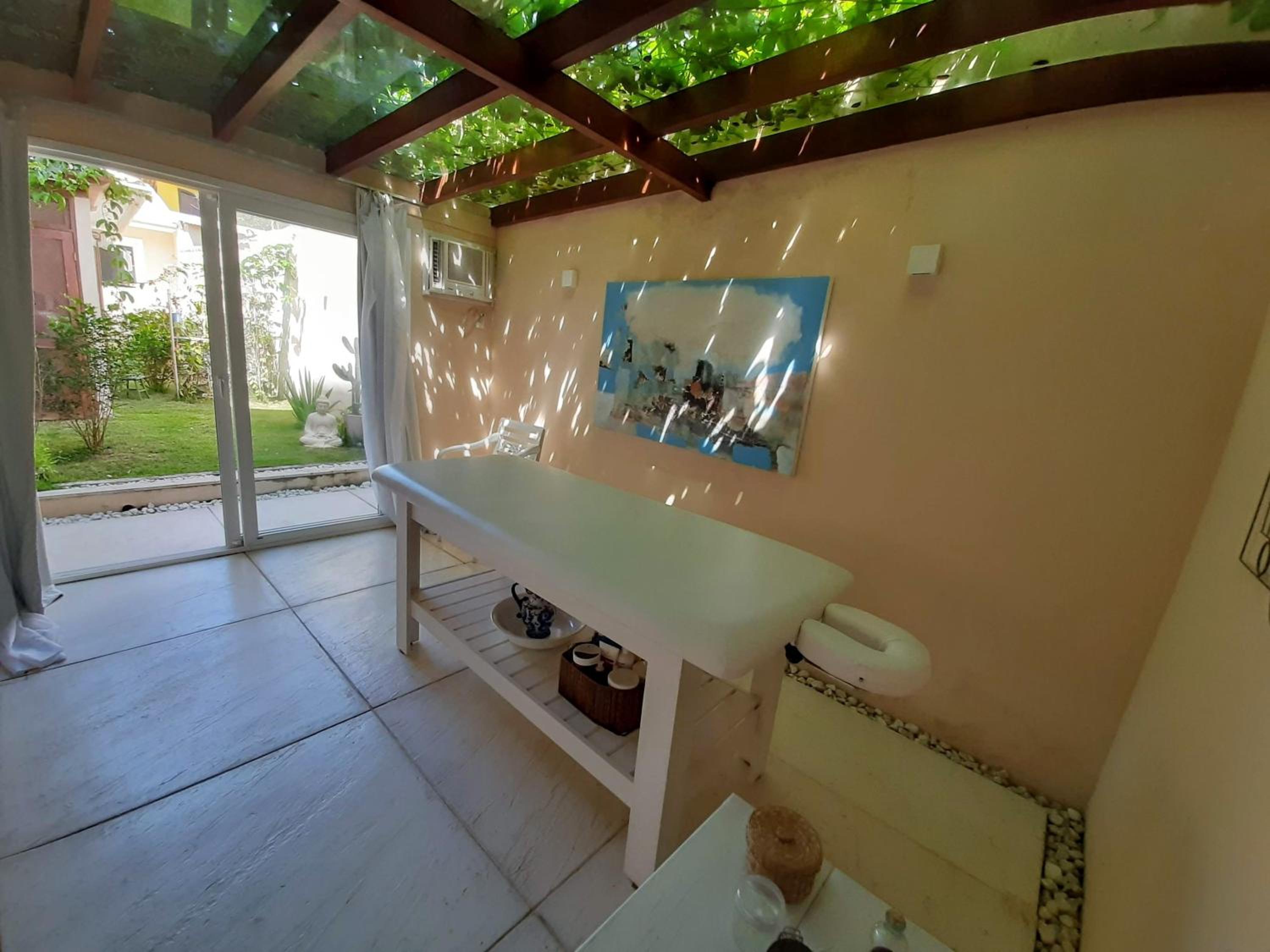 Sugestão: contruir uma expansão da área do spa e fazer o refeitório lá (atual spa e essa expansão). Mudar o spa para o atual refeitório.