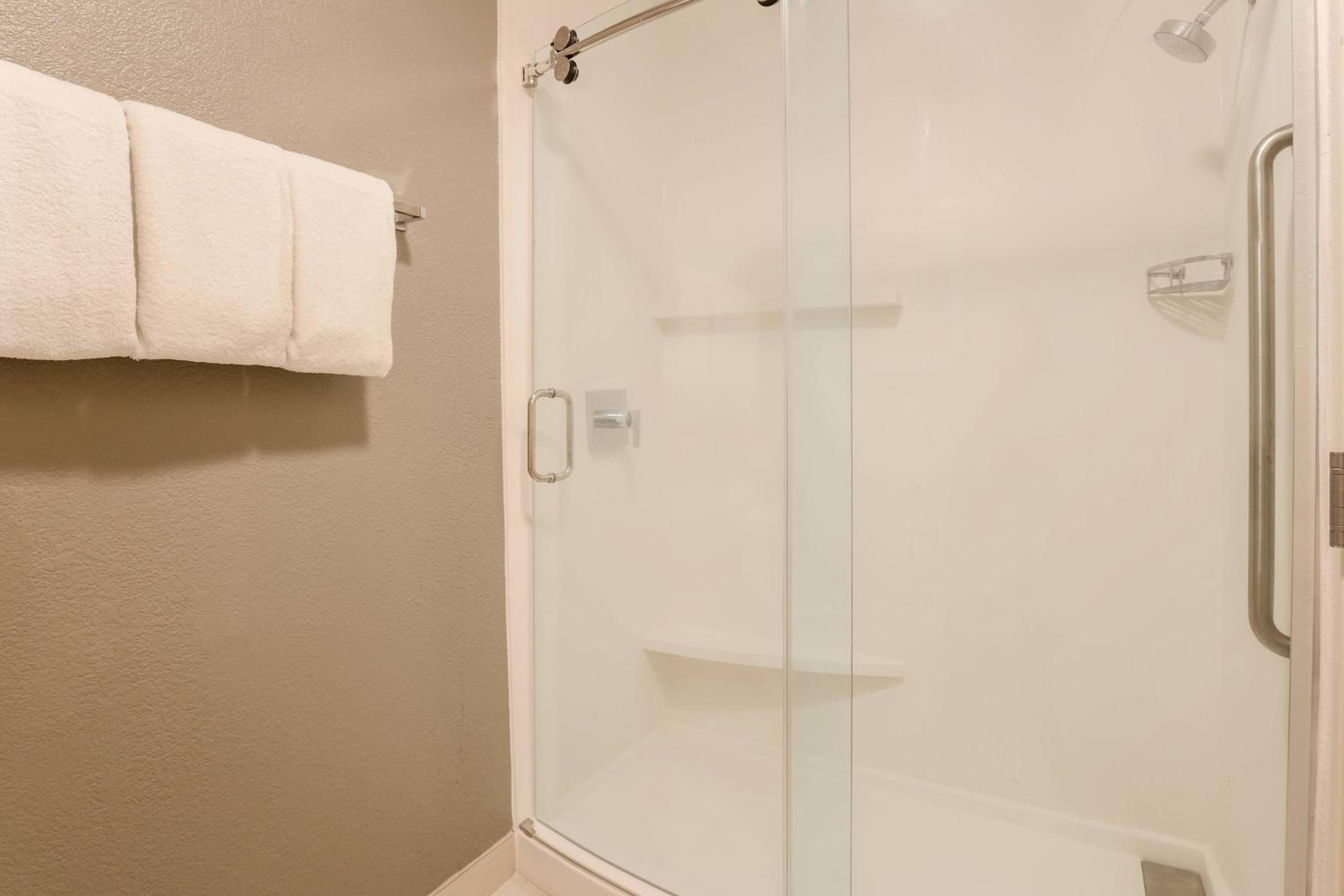 The room was clean but the noise from the interstate was overwhelming. If your room is on the side of the hotel that faces the interstate then beware. Our window seals were bad because in the morning the windows had condensate on both sides. You could not see out at all and I believe that also contributed to the noise of the interstate. The interstate has a on-ramp right behind the hotel so acceleration of the traffic enhanced the noise level. Truely, we didn’t get a good night rest. It was if there was window sized hole in the wall. It was very late when we arrived or we would have asked for another room.