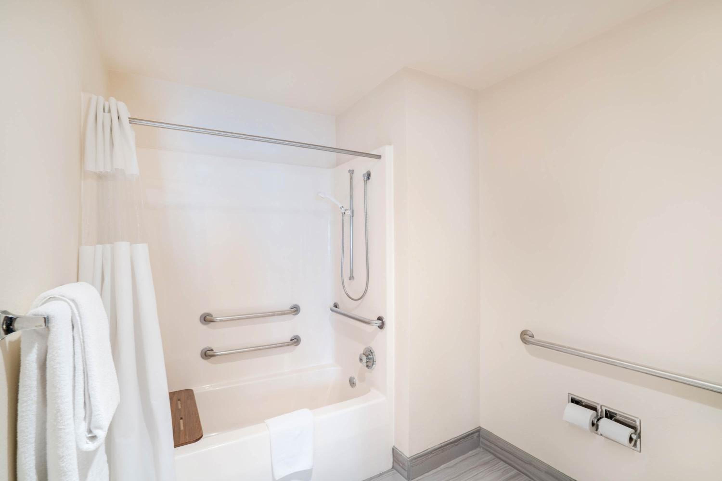 The room had a nice shower, and the bed was comfortable. The commonly used countertops appeared clean. The location was convenient to our business meeting.