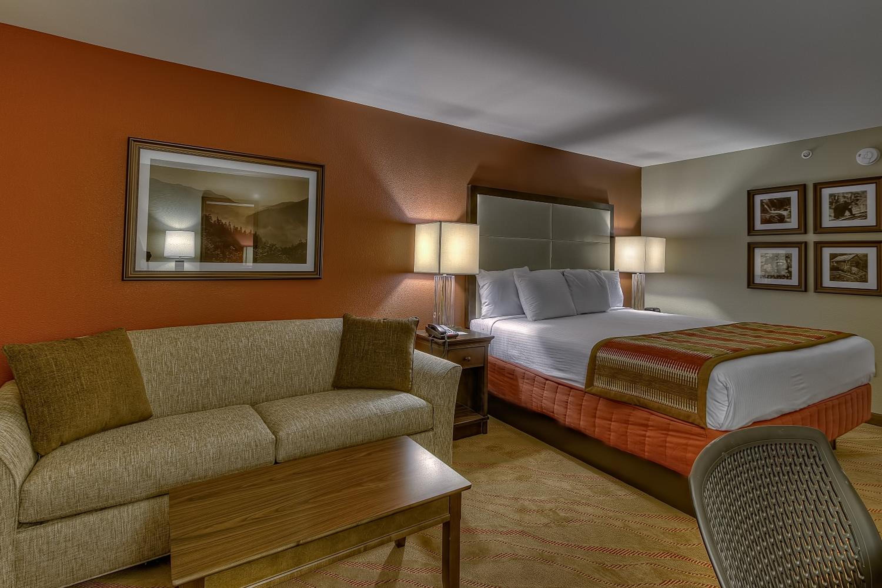 Each room at La Quinta Inn and Suites Pigeon Forge is equipped with modern conveniences like free WiFi, a cable TV, and coffee-making facilities. Guests can unwind in the indoor pool or opt for a room with a luxurious spa bath for added relaxation.
