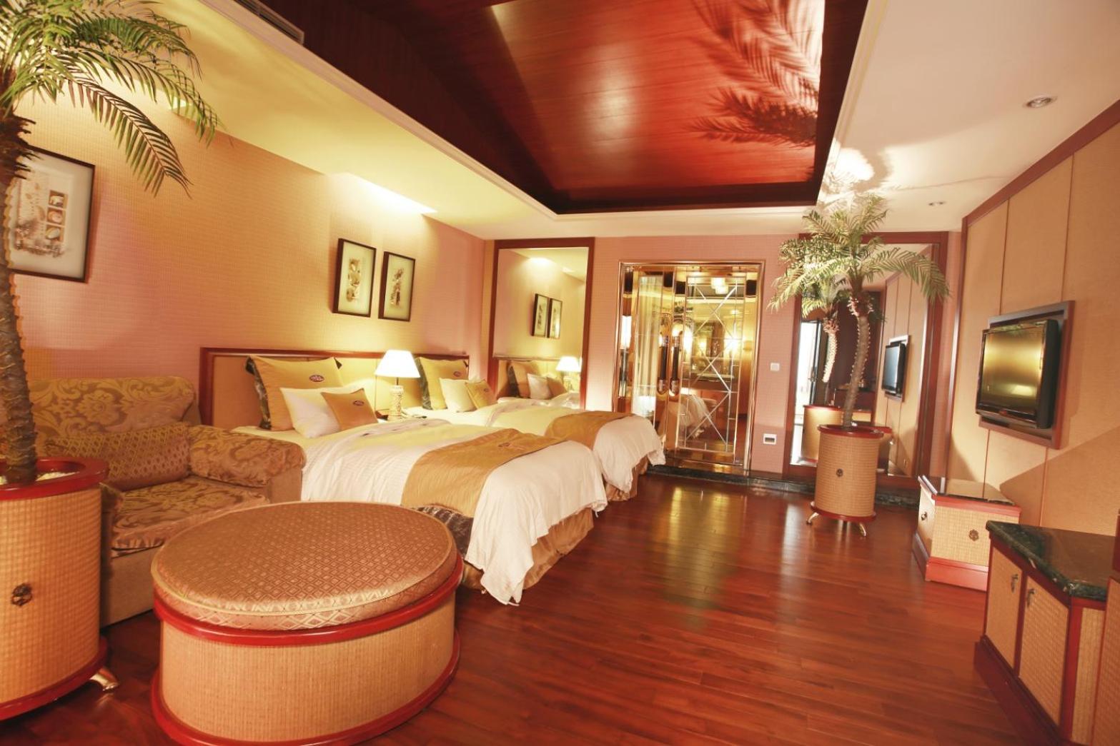 Indulge in a relaxing stay at Chuang-Tang Spring SPA Hotel - Deyang, offering a rejuvenating hot spring bath and a children's playground. Each room is elegantly furnished with modern amenities, including a private hot tub and bath for the ultimate comfort.
