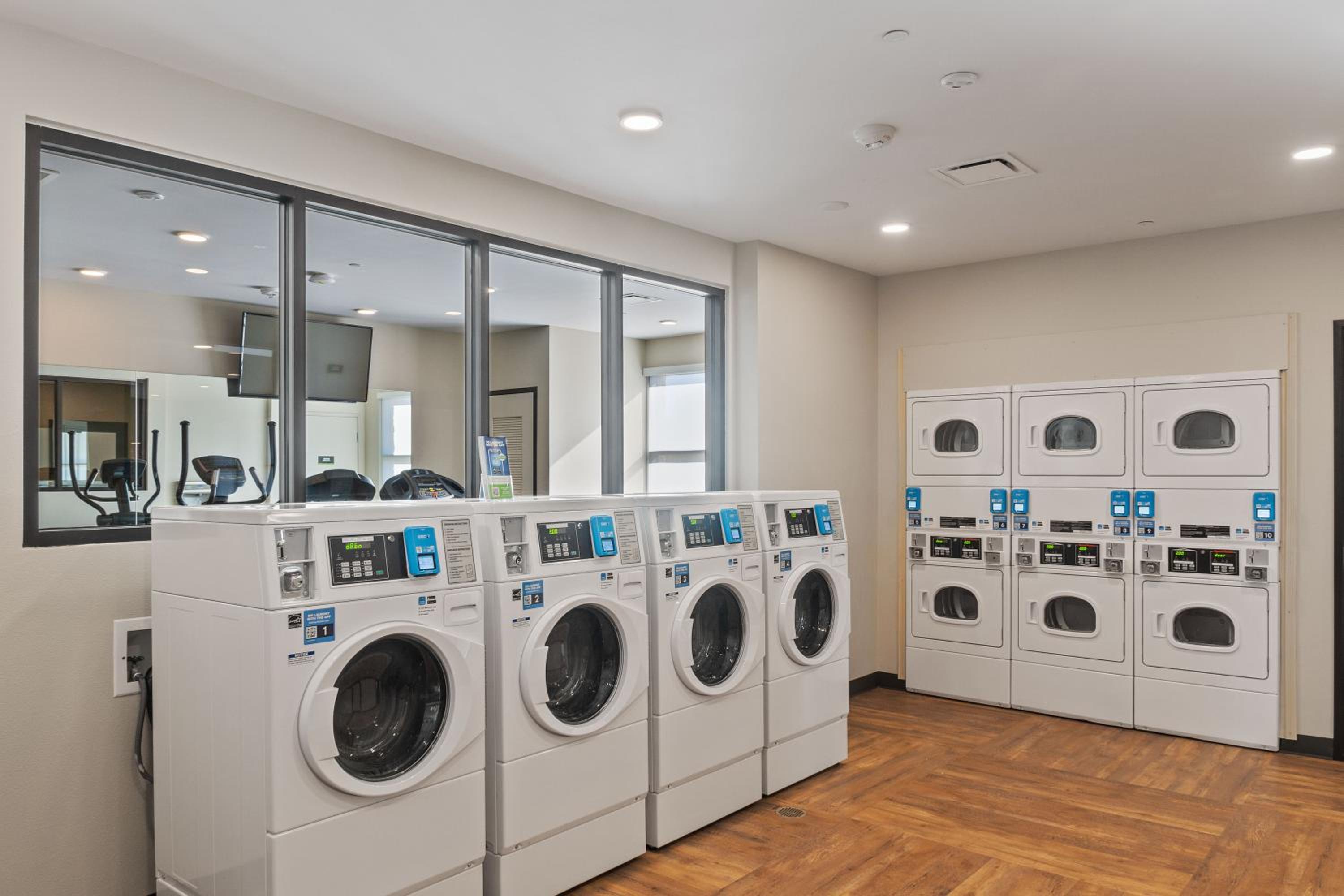 Great location with shopping centers nearby. No need to pay extra for parking. Good on the go breakfast snacks. Staff was helpful at the front desk for requests.