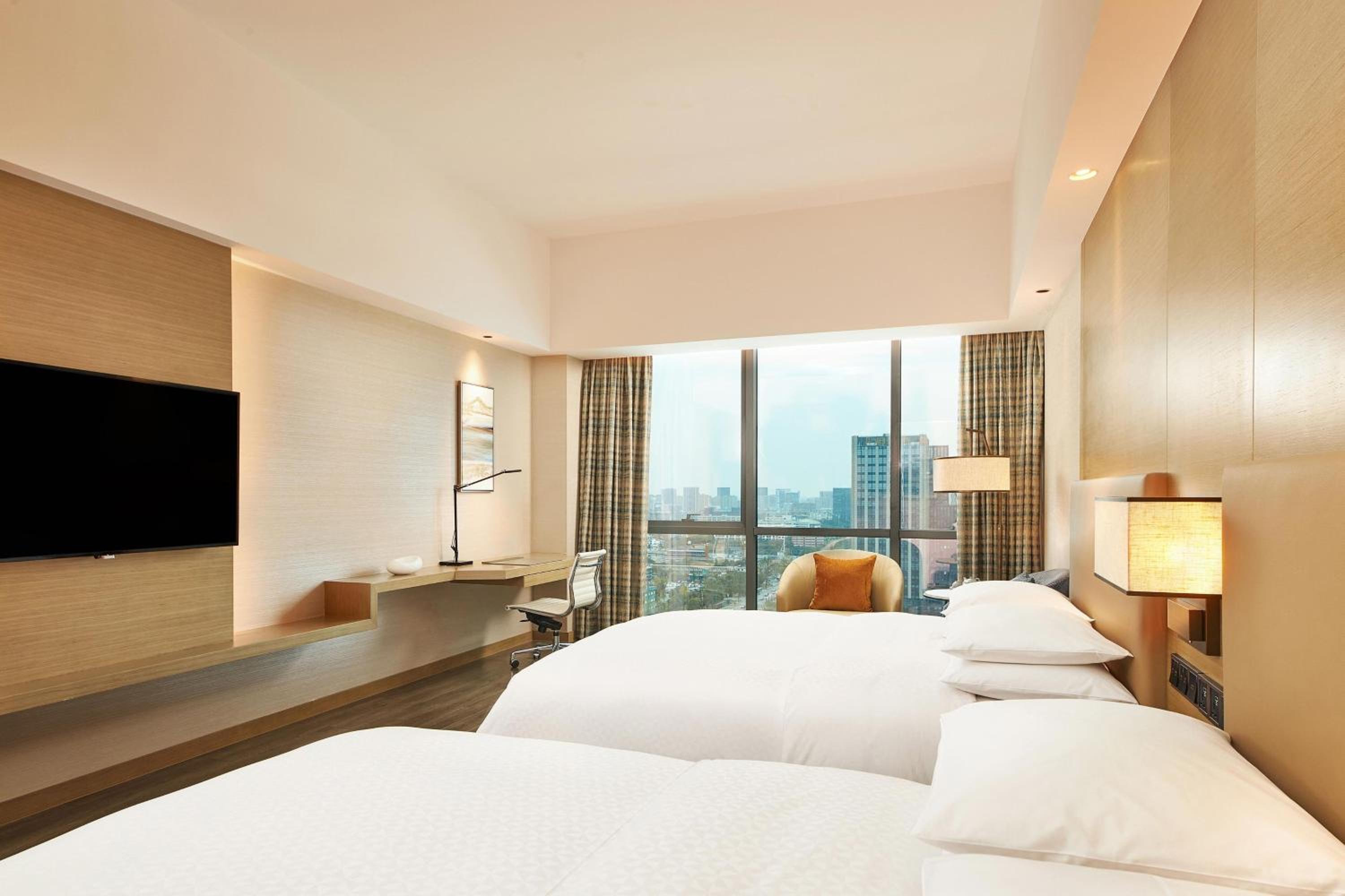 Relax in air-conditioned rooms equipped with modern conveniences like a coffee machine, minibar, and a private bathroom. Some units even boast stunning city views, ensuring a comfortable and memorable stay at Four Points by Sheraton Jiaxing.