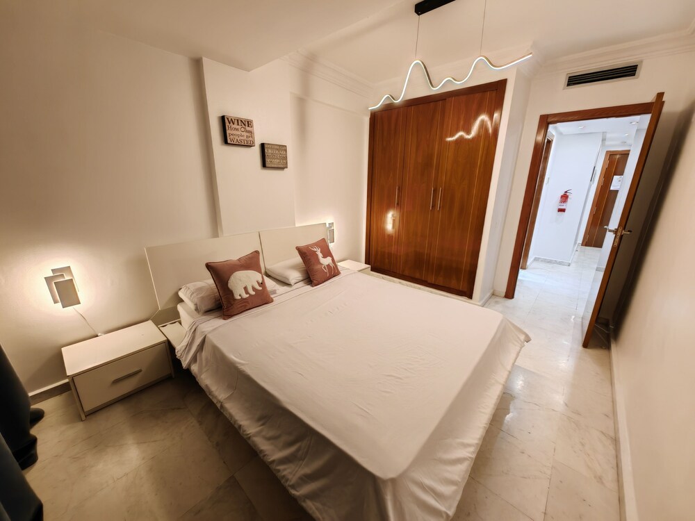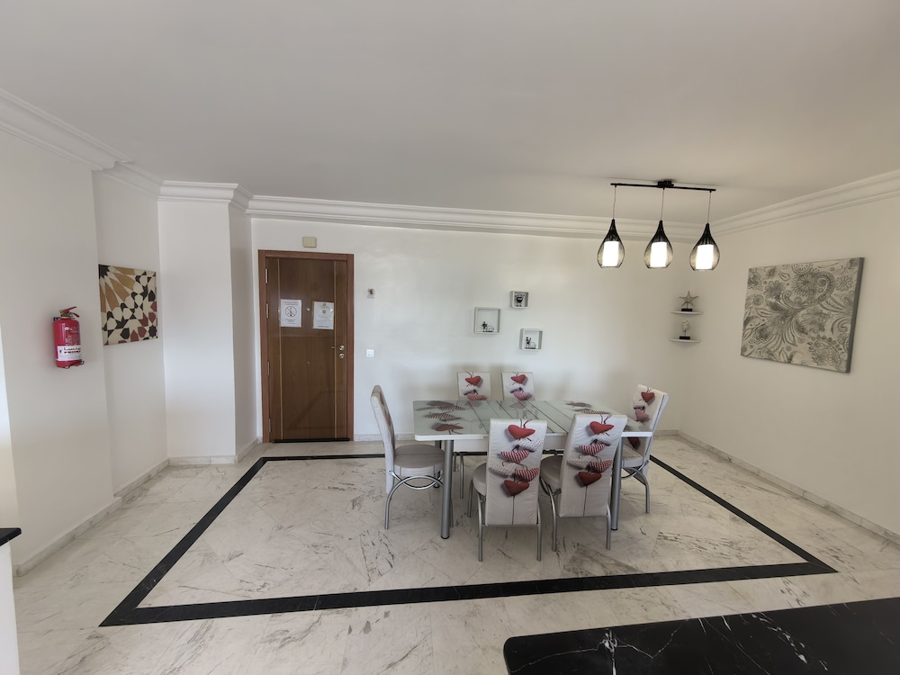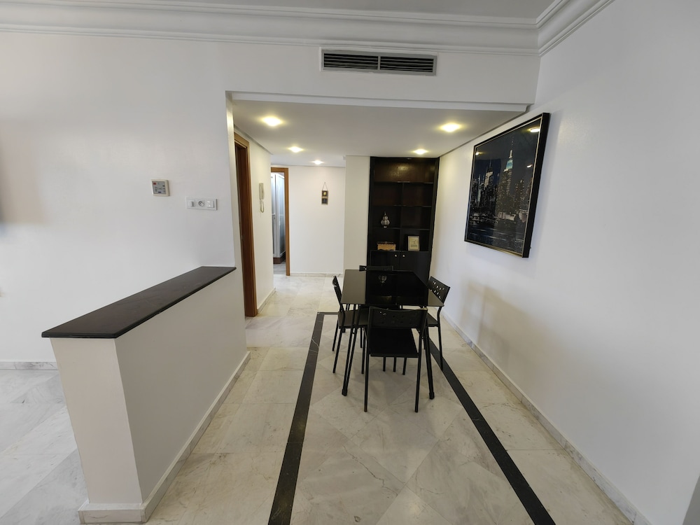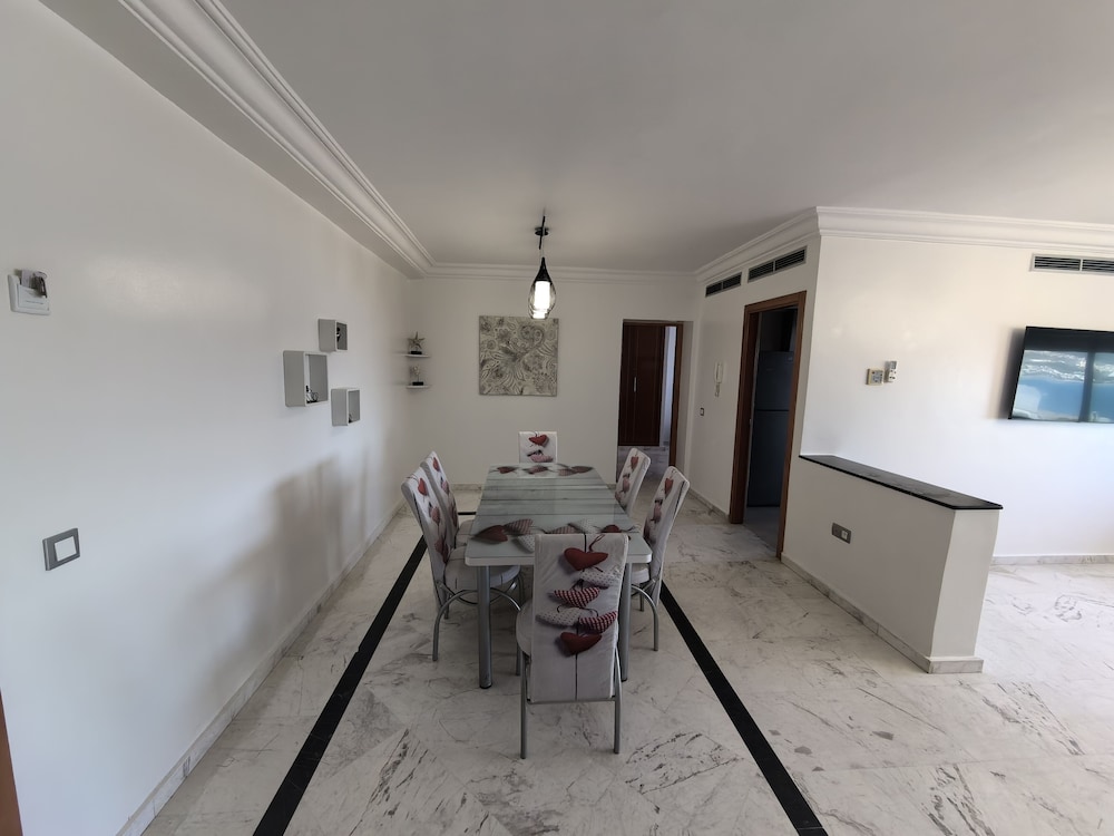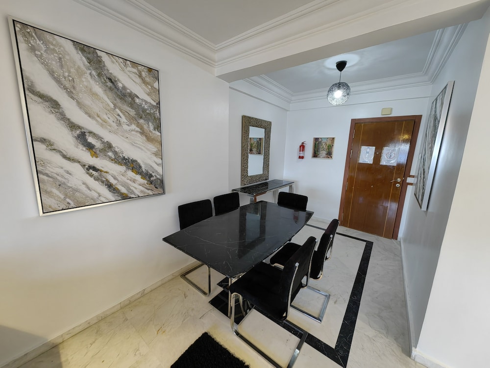 Very conveniently placed. A lot of good eateries around as well. The room had a beautiful view of the Tangier Port. Very clean apartment. Bushra, Mariam and Hamza were extrememly helpful in making pur stay in Tangier a wodnerful delight. Thankyou.