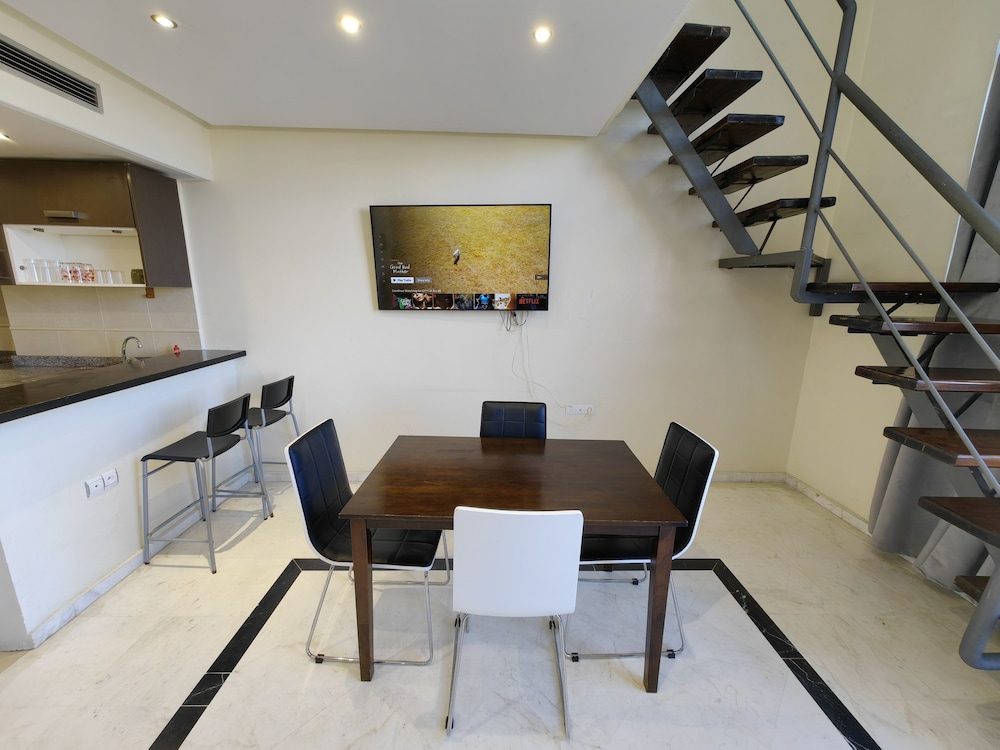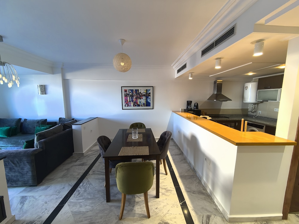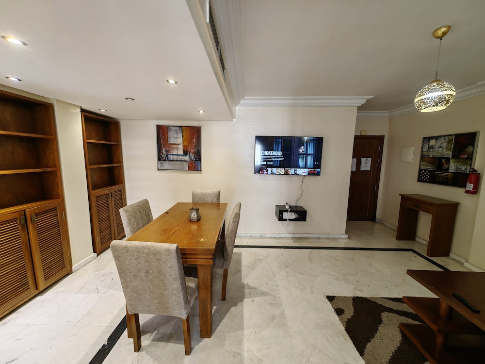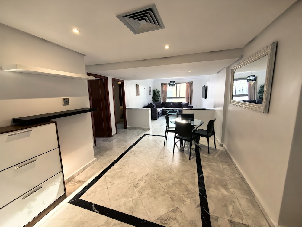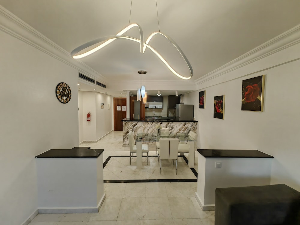 Very conveniently placed. A lot of good eateries around as well. The room had a beautiful view of the Tangier Port. Very clean apartment. Bushra, Mariam and Hamza were extrememly helpful in making pur stay in Tangier a wodnerful delight. Thankyou.