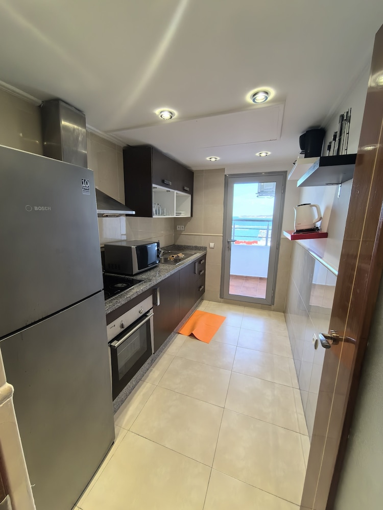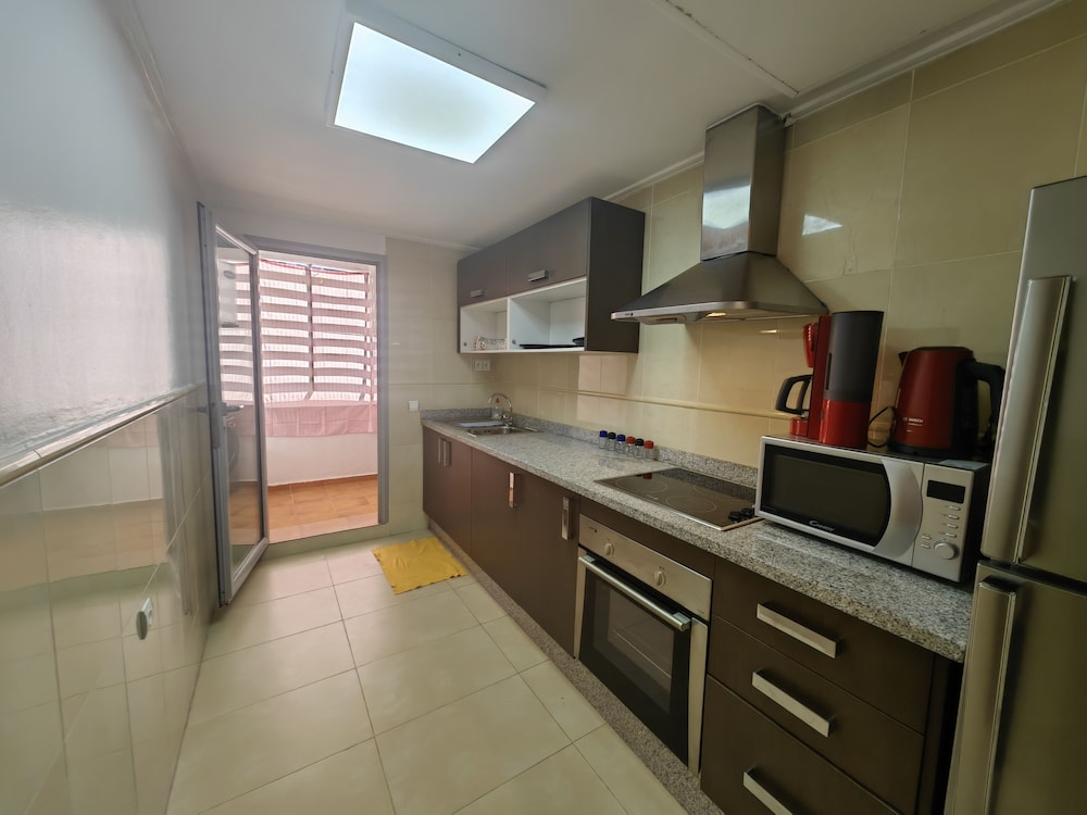 I really loved the view of the Strait of Gibraltar from both my bedroom and living room windows. I also liked that there were three restaurants and a shopping center on the plaza right there under the apartment.