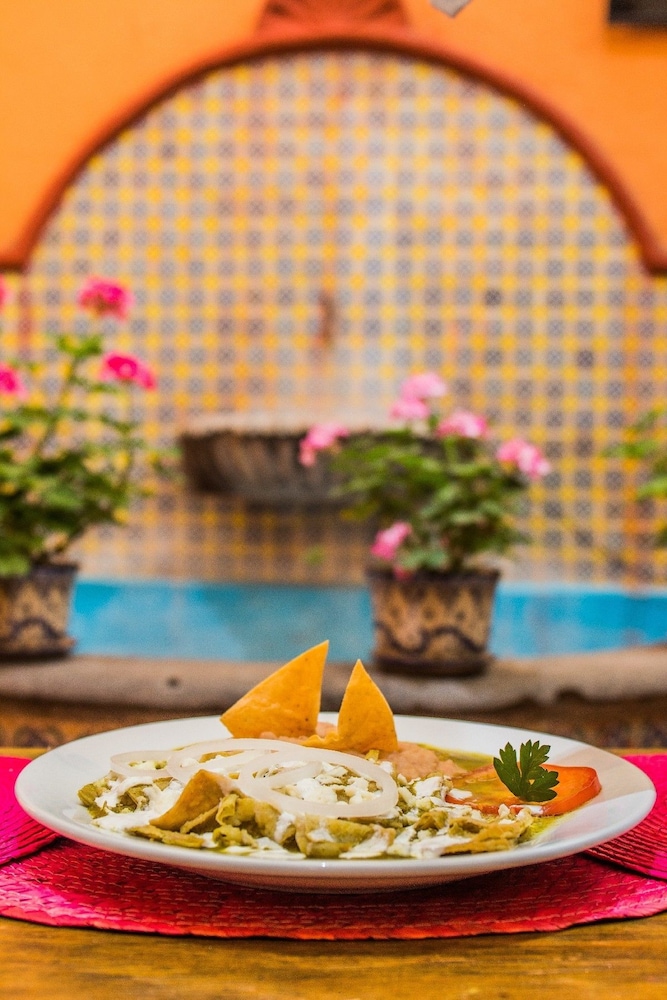 Es más un restaurante que un hotel. Con el ruido que eso significa. Mi habitación estaba cerca de la cocina, junto al baño del restaurante por lo que hay que mantener las cortinas cerradas todo el tiempo. Dice que hay disponibilidad de estacionamiento, pero tiene un costo de $300mxn el día y se encuentra a 15 minutos caminando cuesta arriba. Al llegar después de una boda no había nadie quien me abriera en la madrugada. Posteriormente hubo pasos en la azotea, que fueron de alguien que se había metido escapando de la policía. El velador no se enteró hasta que la policía (desde otro techo) y yo le dijimos. Se tienen que esforzar en dar un buen servicio de hotel o mantenerse sólo como restaurante.