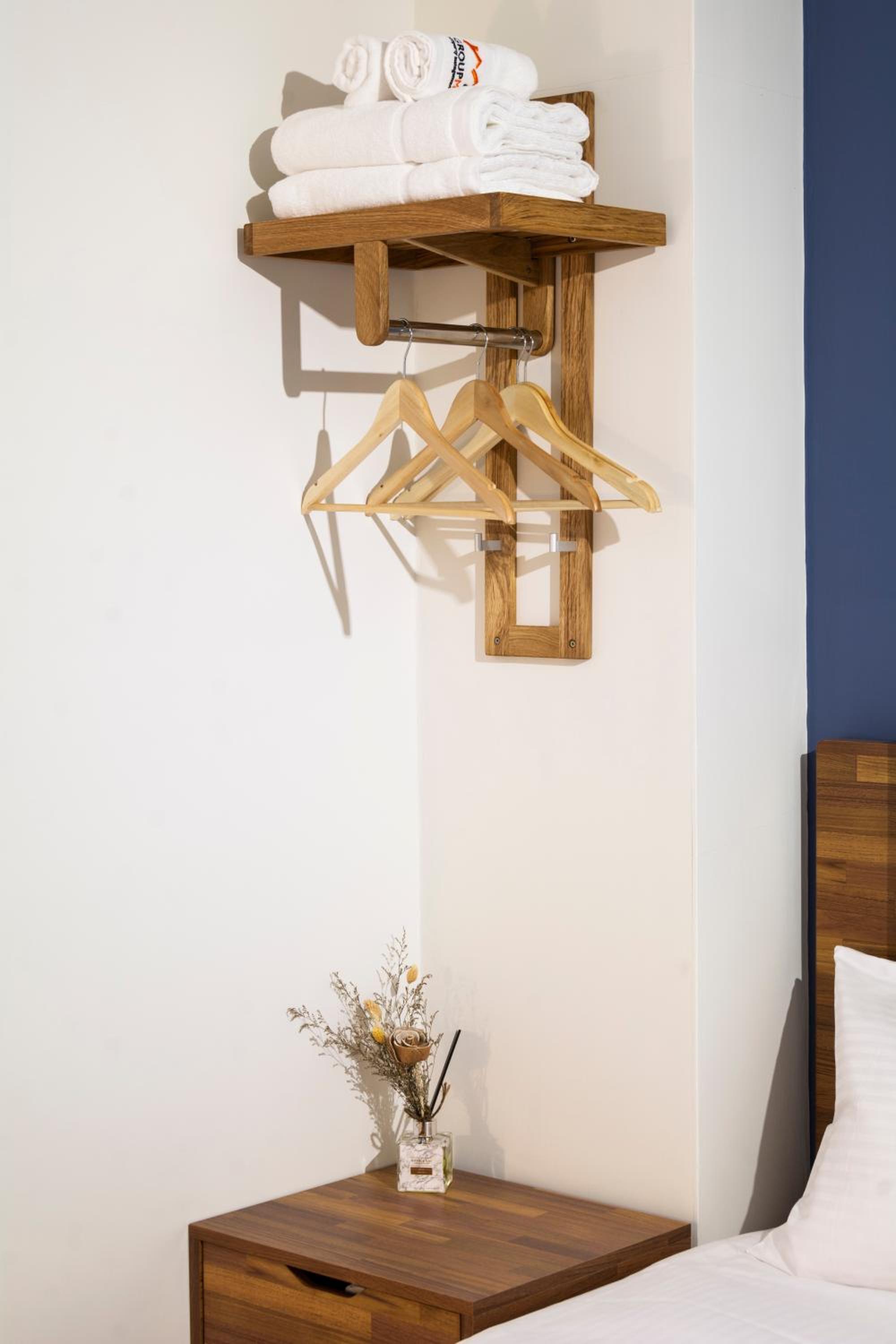 旅店有密碼鎖,整體明亮、乾淨又安全。