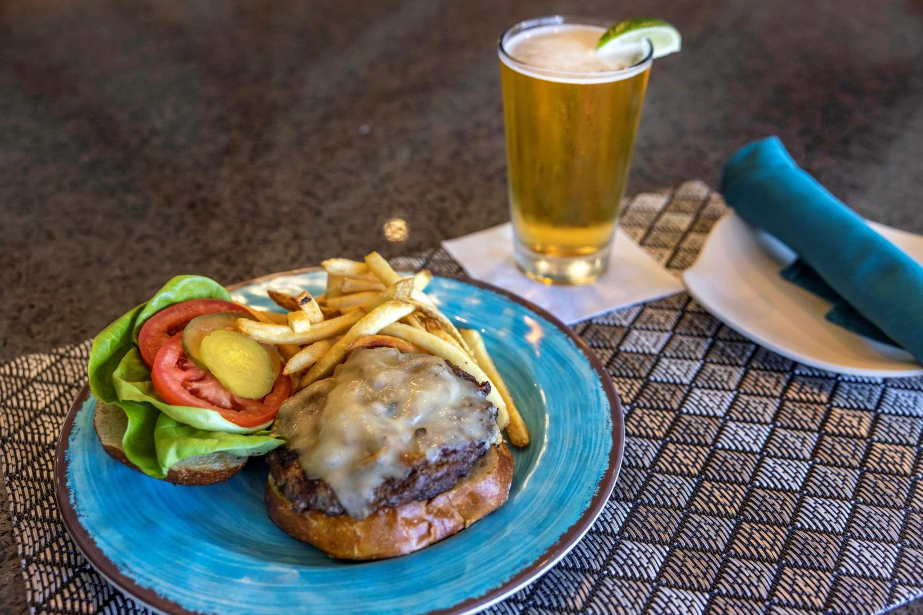Savor fresh seafood and juicy steaks at The Blue Wave Bar & Grill while enjoying outdoor dining with stunning bay views. Unwind in our bay-side pools, fitness center, hot tub, or by the outdoor fireplace after a day of exploration.