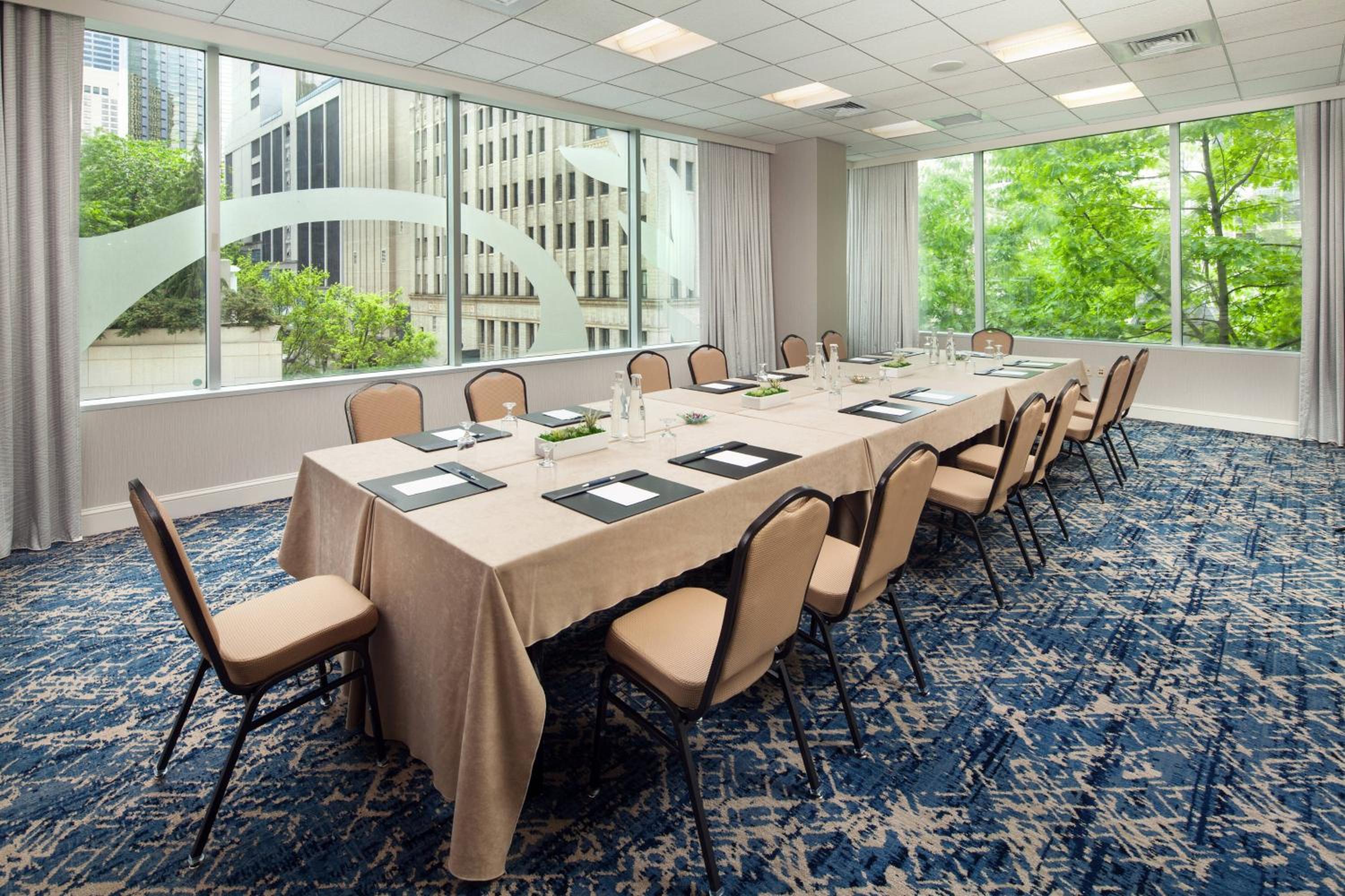 Indulge in a variety of dining options at the Sheraton Seattle Hotel, including the grab-n-go feature "In Short Order" for quick bites and the urban contemporary French restaurant, Loulay Kitchen & Bar. Unwind at the Fountain Wine Bar and Lounge while sipping on evening cocktails, adding a touch of sophistication to your stay.