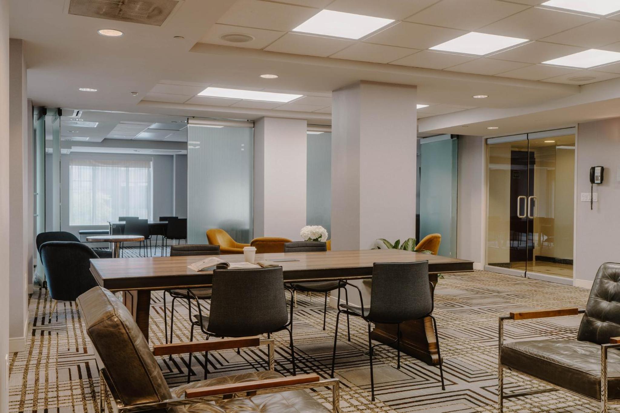 Club Quarters in Washington DC offers a unique concept in the hotel industry. Guests can enjoy a private, full-service hotel experience with stunning views of Farragut Square. The hotel features a club living room with comfortable seating areas for work or relaxation, as well as socializing. Additionally, guests have access to a state-of-the-art fitness center, complete with a Peloton® bike for those looking to stay active during their stay.
