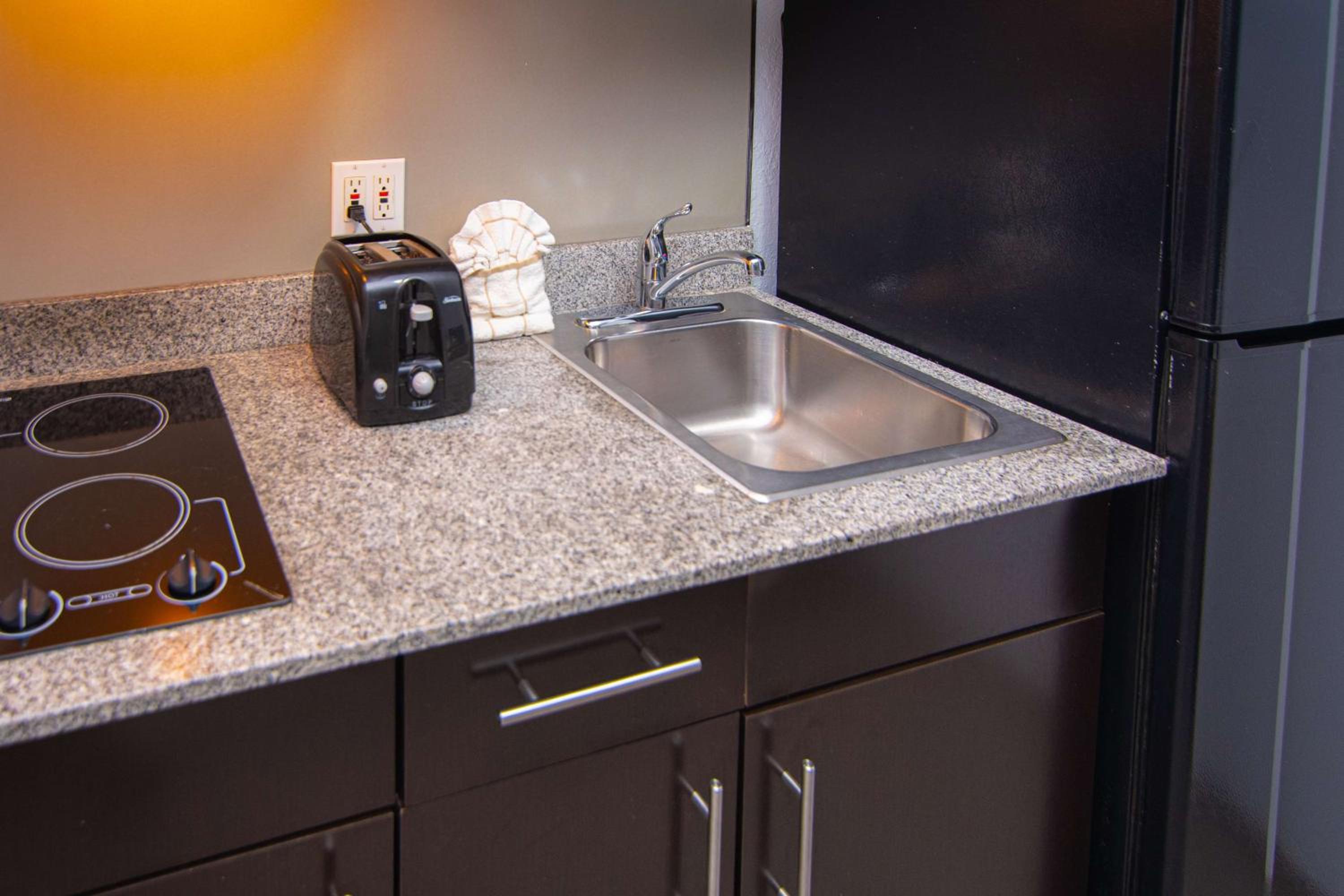 Each room is furnished with a kitchenette, microwave, cable TV, Wi-Fi, and a coffee maker, ensuring a cozy stay for guests.