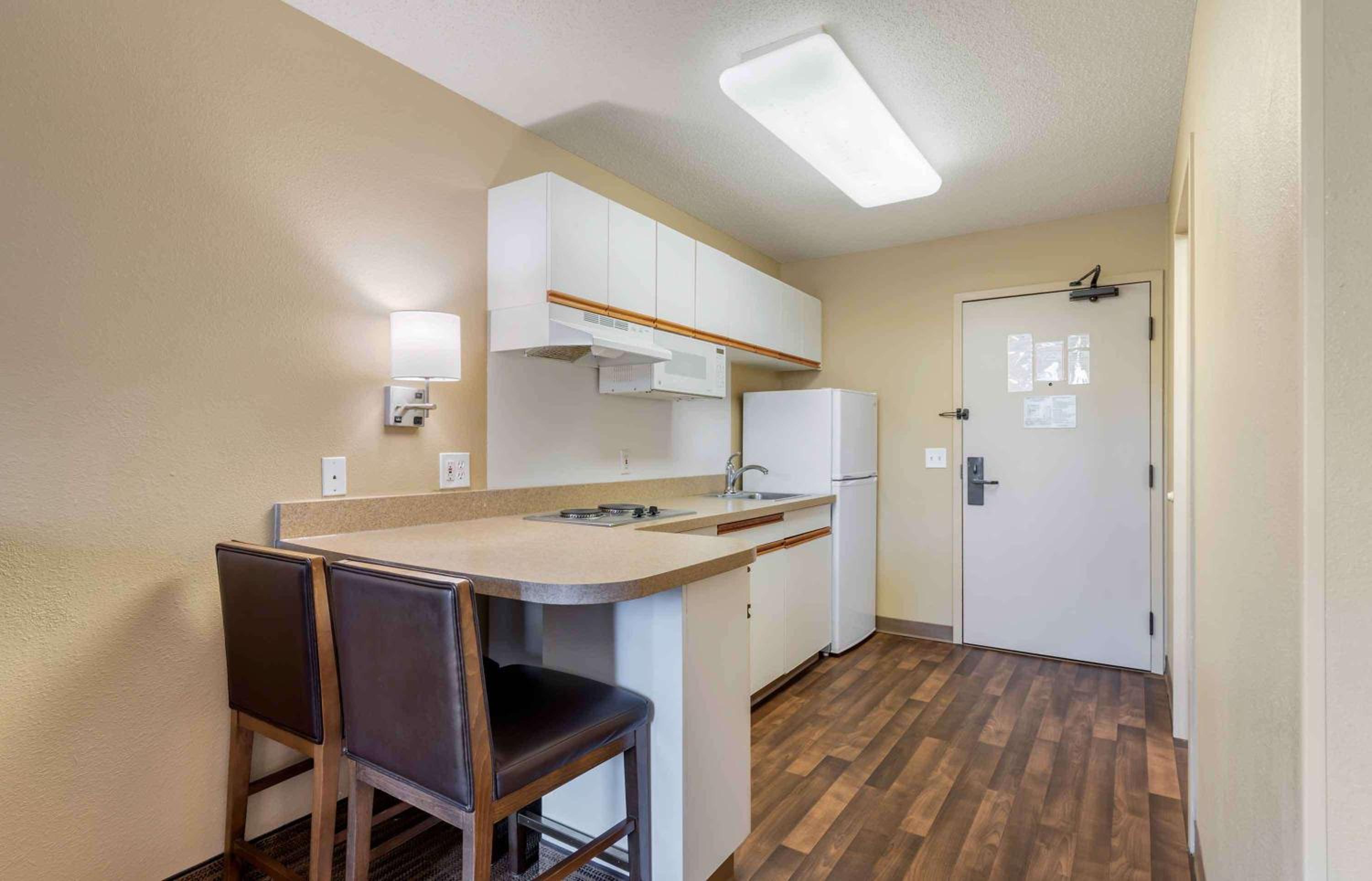 Experience the convenience of having a fully equipped kitchen in every room, complete with a stovetop, microwave, and fridge. Cook your favorite meals during your extended stay at Extended Stay America - Minneapolis.
