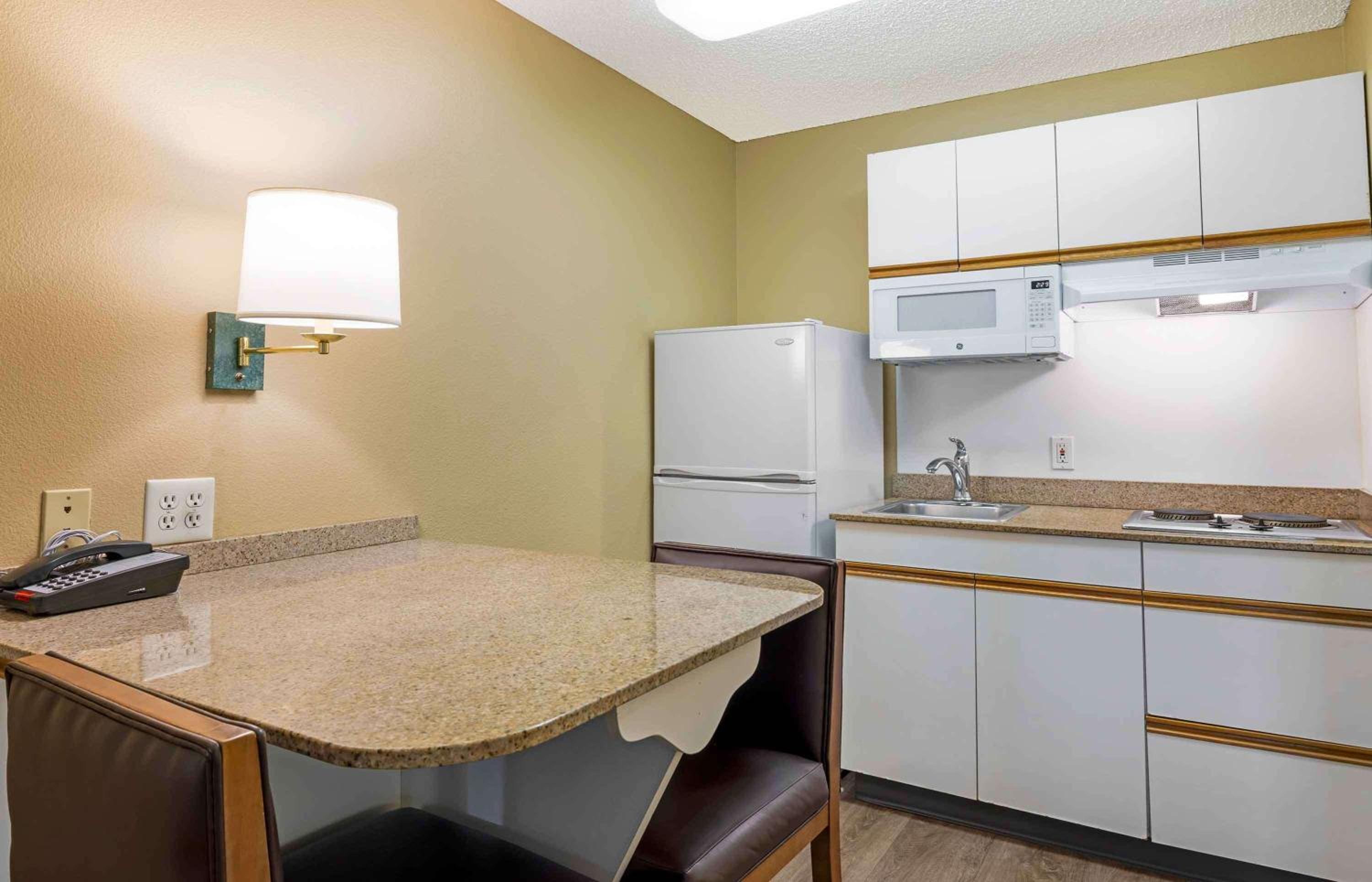 Extended Stay America - San Diego - Mission Valley offers fully equipped kitchens in all rooms, perfect for longer stays. Each kitchen includes a stove-top, microwave, and fridge, providing guests with the convenience of home-cooked meals.