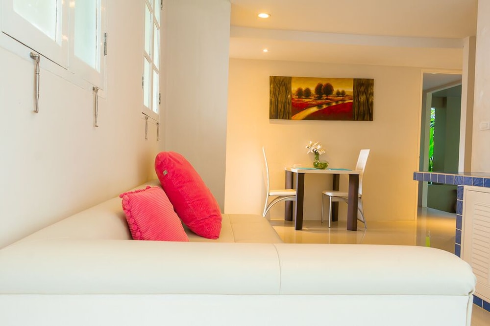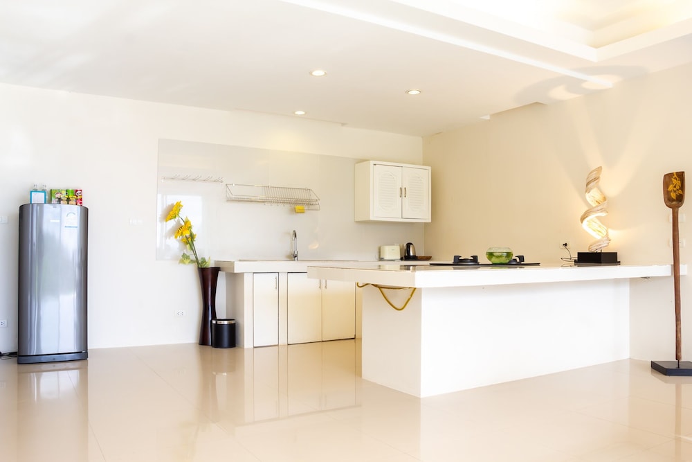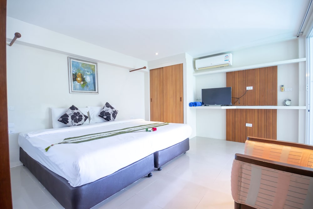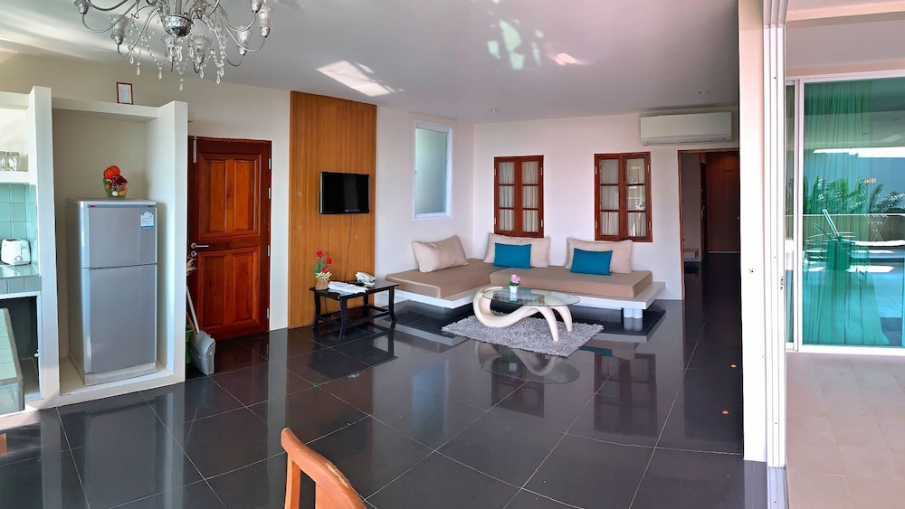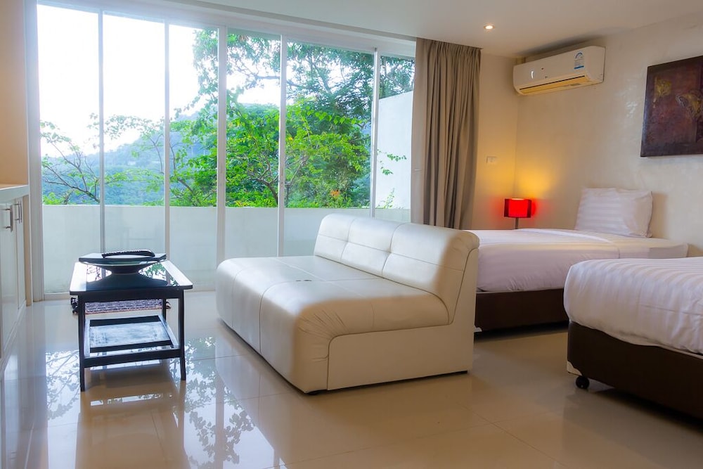 Utterly disappointed. We were down-graded to another room for 2 days out of the 4-day stay without explanation or compensation. Check-in time was at 2pm yet the room wasn't ready until 5pm. Only 2 towels were supplied when we had 6 people. Shower had extremely poor water pressure. No hair dryer was provided. Bathrooms had used shower gels and caps lying around. Refrigerator didn't work so we had to place everything in the freezer. Tables had left over foods and stains. Duvet had stains. TV didn't work in the common room, we informed the reception to fix, they sent a guy up who just pressed the buttons for a minute and left without saying anything. Swimming pool was disgusting with debris and the water looked yellow. Went to Phuket for a relaxing holiday and left feeling not relaxed at all. The reception were constantly filled with guests that had complaints. Will never recommend this place to anyone.