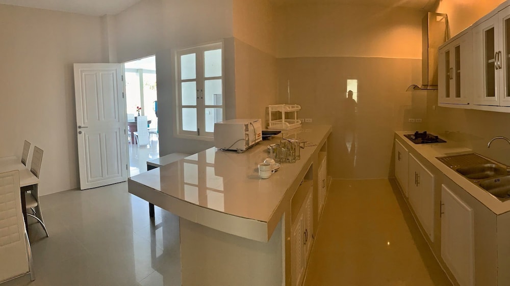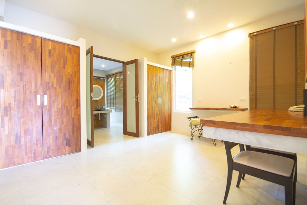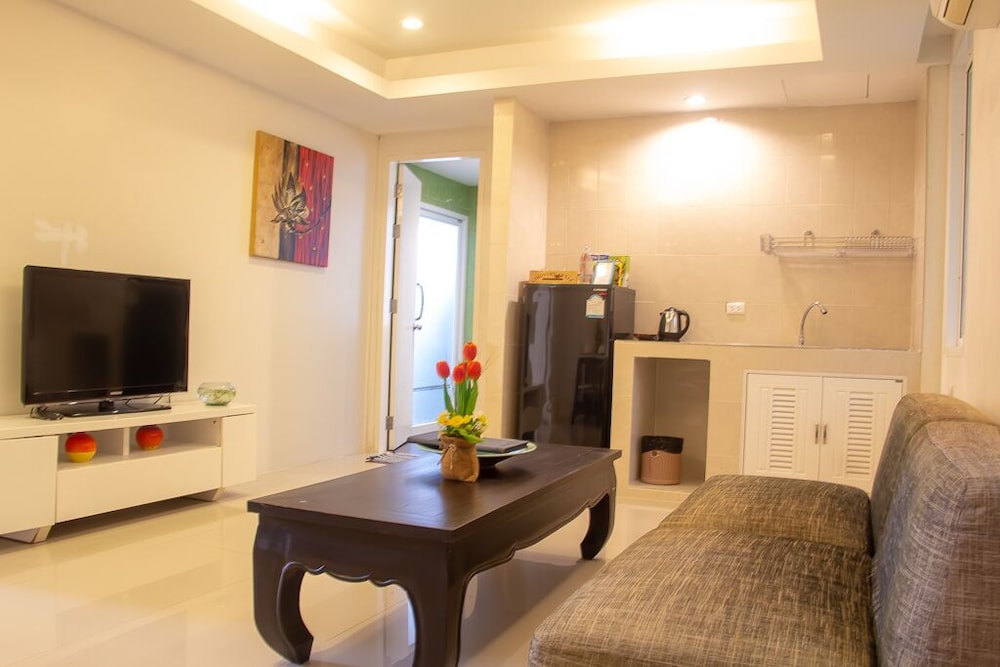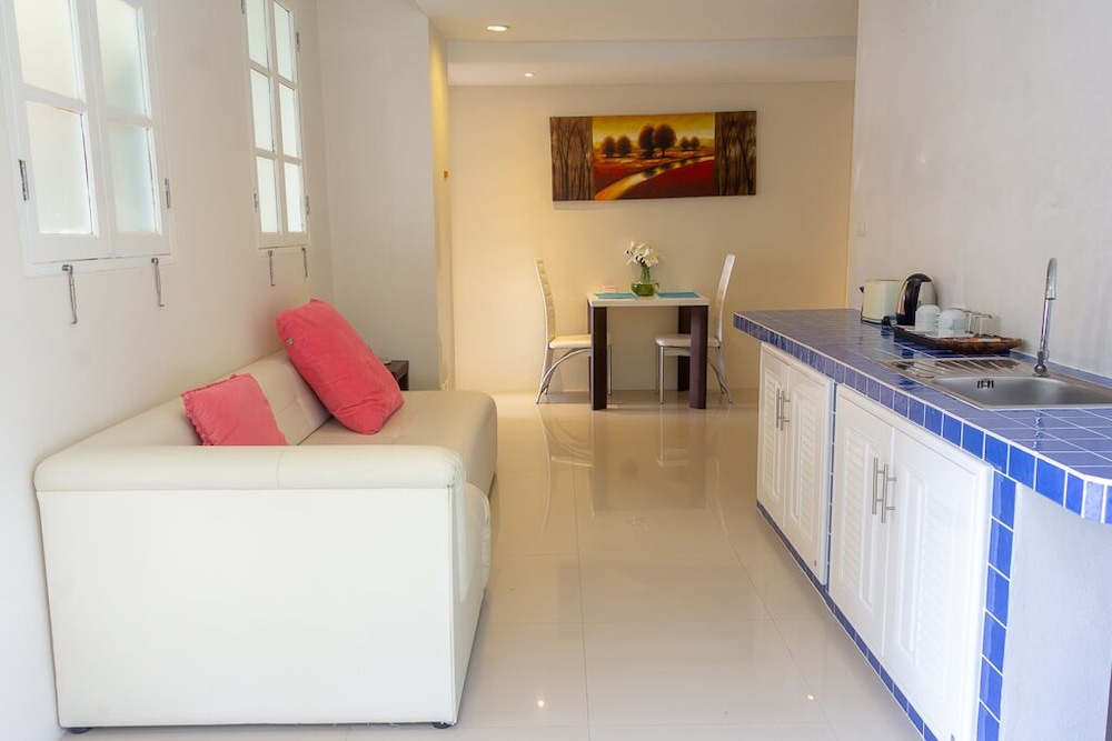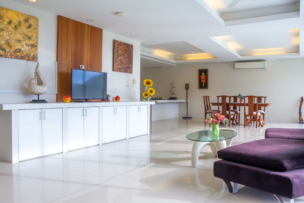 Utterly disappointed. We were down-graded to another room for 2 days out of the 4-day stay without explanation or compensation. Check-in time was at 2pm yet the room wasn't ready until 5pm. Only 2 towels were supplied when we had 6 people. Shower had extremely poor water pressure. No hair dryer was provided. Bathrooms had used shower gels and caps lying around. Refrigerator didn't work so we had to place everything in the freezer. Tables had left over foods and stains. Duvet had stains. TV didn't work in the common room, we informed the reception to fix, they sent a guy up who just pressed the buttons for a minute and left without saying anything. Swimming pool was disgusting with debris and the water looked yellow. Went to Phuket for a relaxing holiday and left feeling not relaxed at all. The reception were constantly filled with guests that had complaints. Will never recommend this place to anyone.