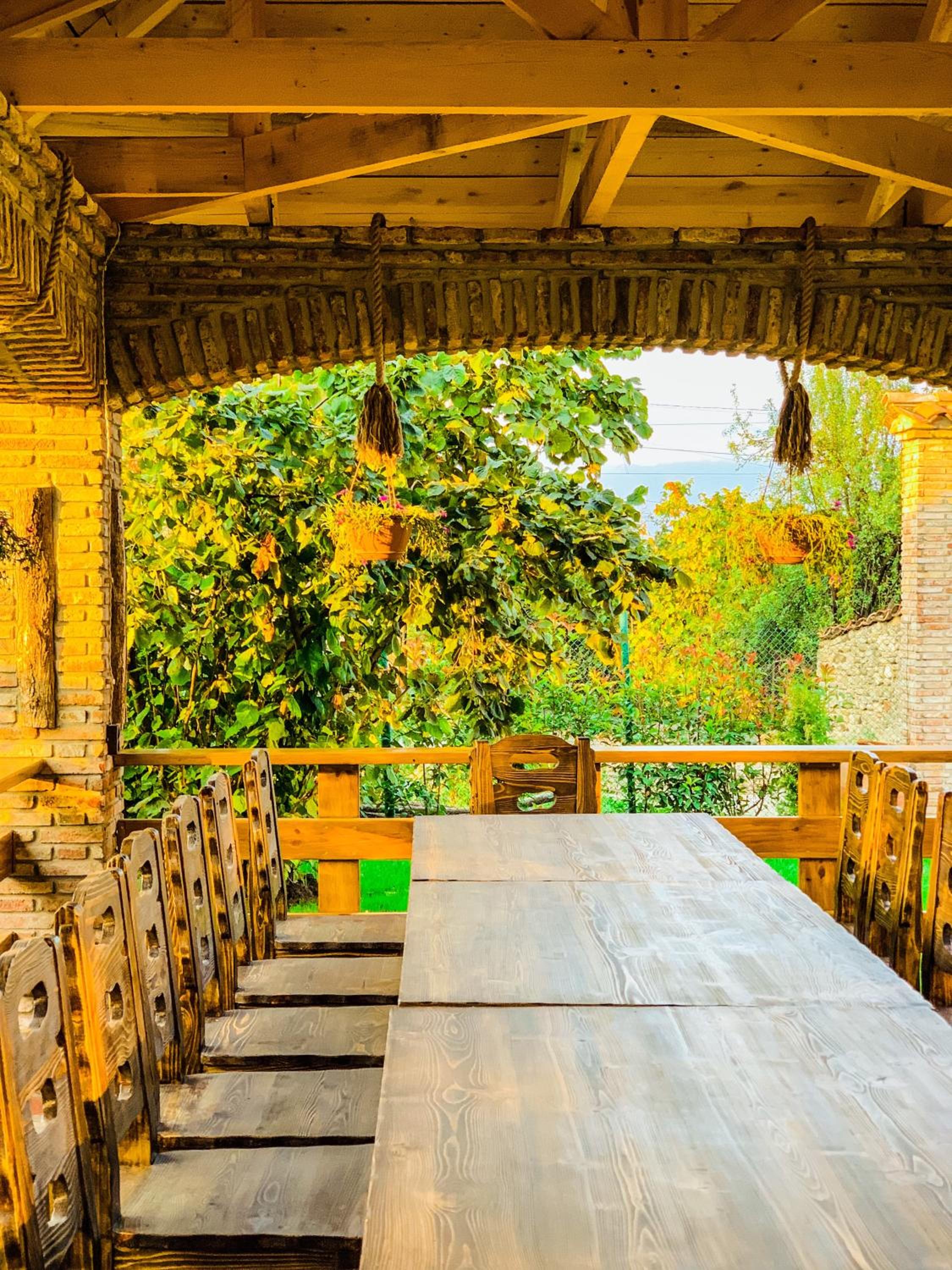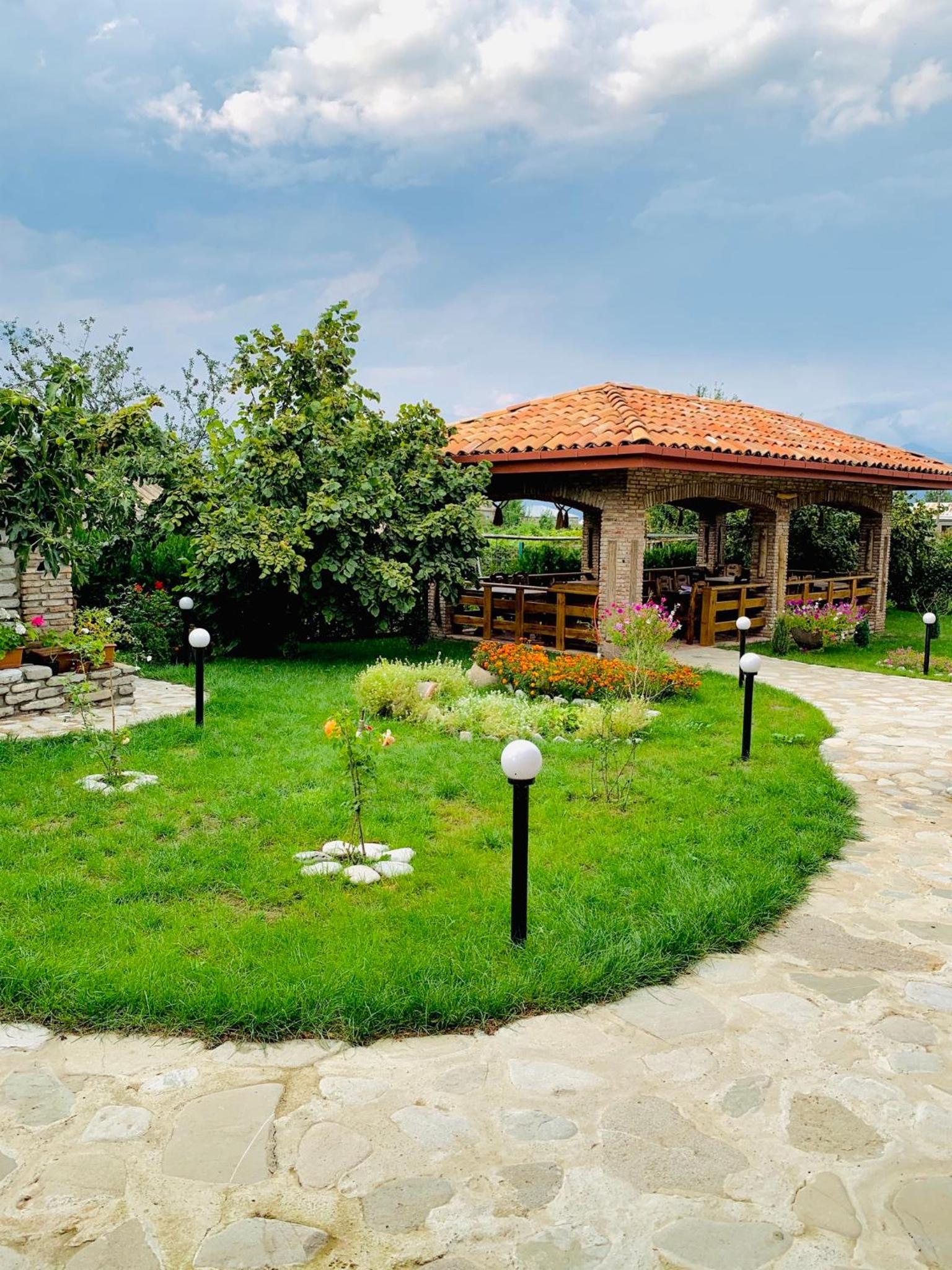 Klimatyczna altanka w otoczeniu zieleni w której mogliśmy zjeść bardzo dobrą późną kolację. Pokoje czyste i bardzo duże.